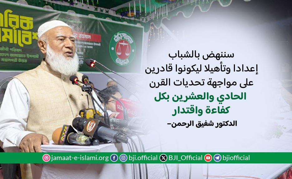 وقال الدكتور شفيق الرحمن، إن الجماعة الإسلامية تخوض منذ عقود حركة نضالية مستمرة من أجل تحويل بنغلاديش إلى دولة رفاه إسلامية حقيقية مؤكدا أنه في حال وصولهم إلى الحكم عبر التفويض الشعبي والانتخابات الحرة فإن جميع المواطنين رجالا ونساء سيمنحون الفرصة لأداء المسؤوليات الوطنية وفقا لكفاءاتهم واستعداداتهم واحتياجاتهم في جو من العدالة وتكافؤ الفرص