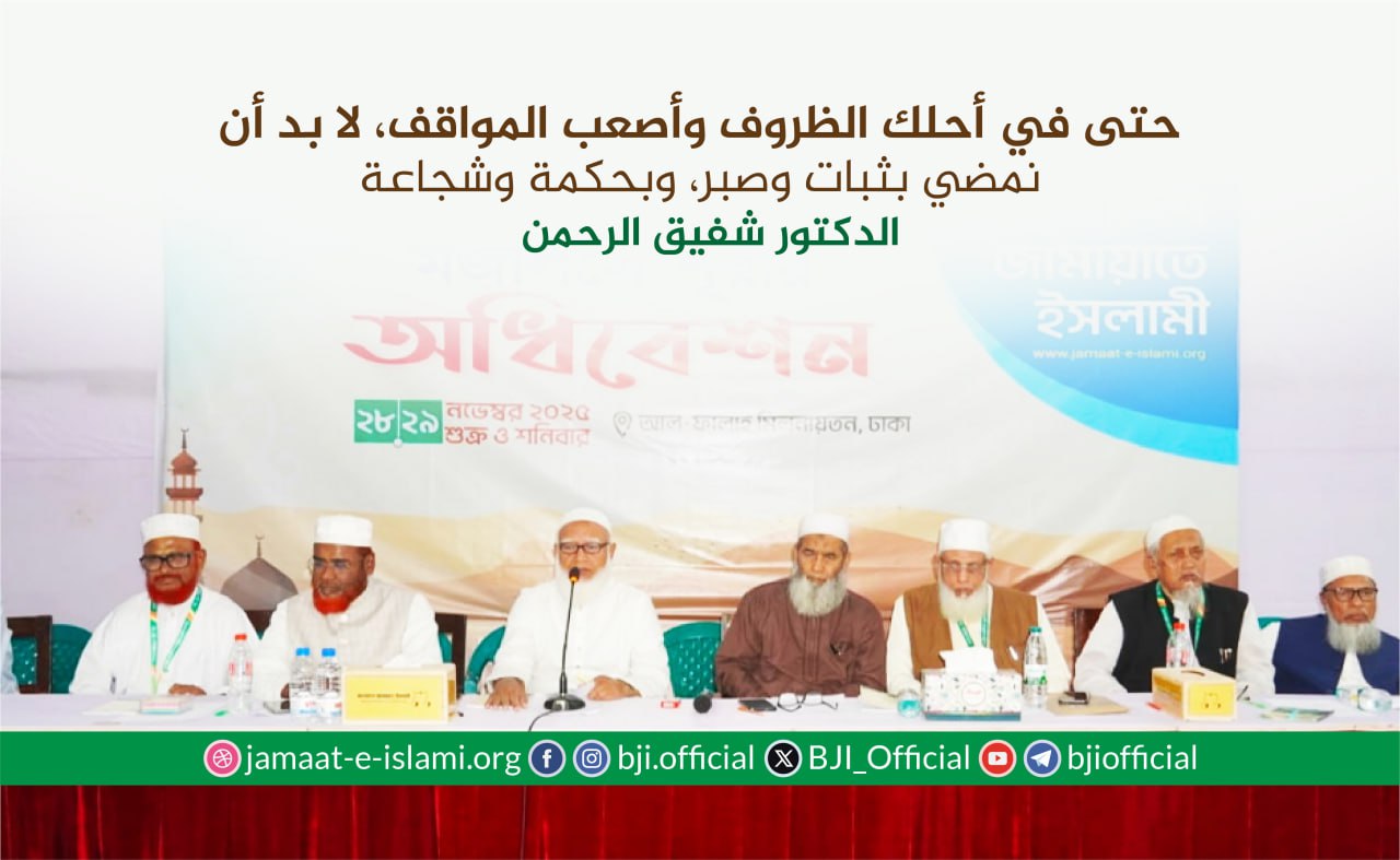 أكد أمير الجماعة الإسلامية في بنغلادش الدكتور شفيق الرحمن أن الواجب على الدعاة أن يمضوا في طريقهم بثبات لا يلين، وبصبر يضيء العثرات، وبحكمة ترشد الخطى، وبشجاعة تفتح أبواب الفرج، مهما أحدقت بهم الظروف وتكاثفت حولهم الابتلاءات
