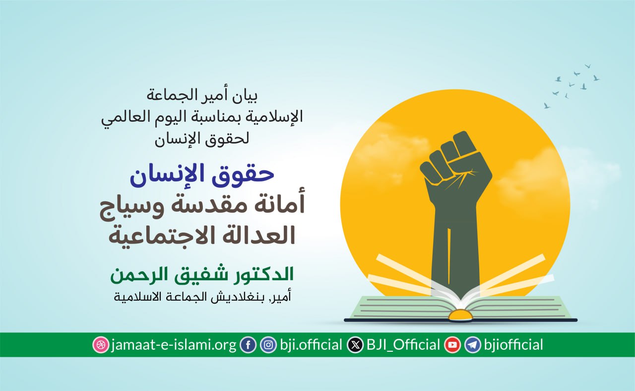 أصدر أمير الجماعة الإسلامية بيانا بمناسبة اليوم العالمي لحقوق الإنسان، جاء فيه: يحل علينا العاشر من ديسمبر حاملا ذكرى الإعلان العالمي لحقوق الإنسان، ذلك الإعلان الذي أقرته الجمعية العامة للأمم المتحدة عام 1948م، ثم خصص هذا اليوم عام 1950م ليكون رمزا عالميا لحماية كرامة الإنسان وصون حقوقه، احتراما لقيم العدالة والحرية وصيانة لإنسانية البشر من كل عسف وظلم
