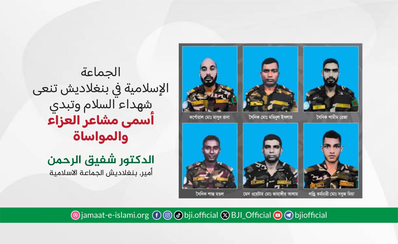 الجماعة الإسلامية في بنغلاديش تنعى شهداء السلام وتبدي أسمى مشاعر العزاء والمواساة
