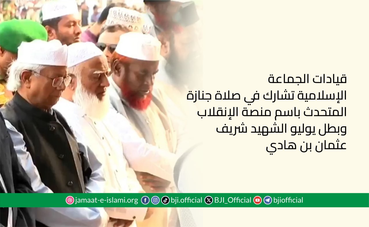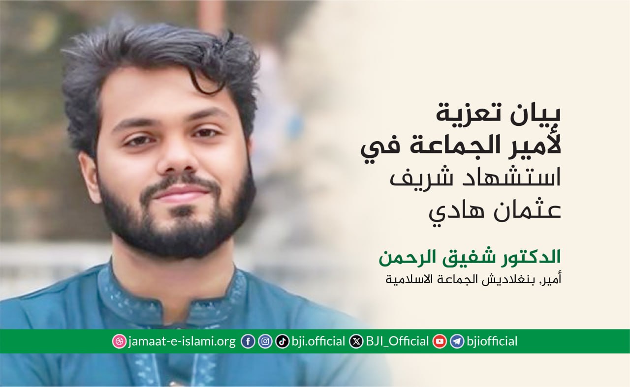 بقلوب يعتصرها الأسى، ونفوس يلفها الحزن العميق، نعى أمير الجماعة الإسلامية في بنغلاديش، الدكتور شفيق الرحمن، يوم 18 ديسمبر، الشهيد شريف عثمان هادي، الناطق باسم منصة الانقلاب وأحد فرسان يوليو الصامدين، في بيان تعزية مؤثر