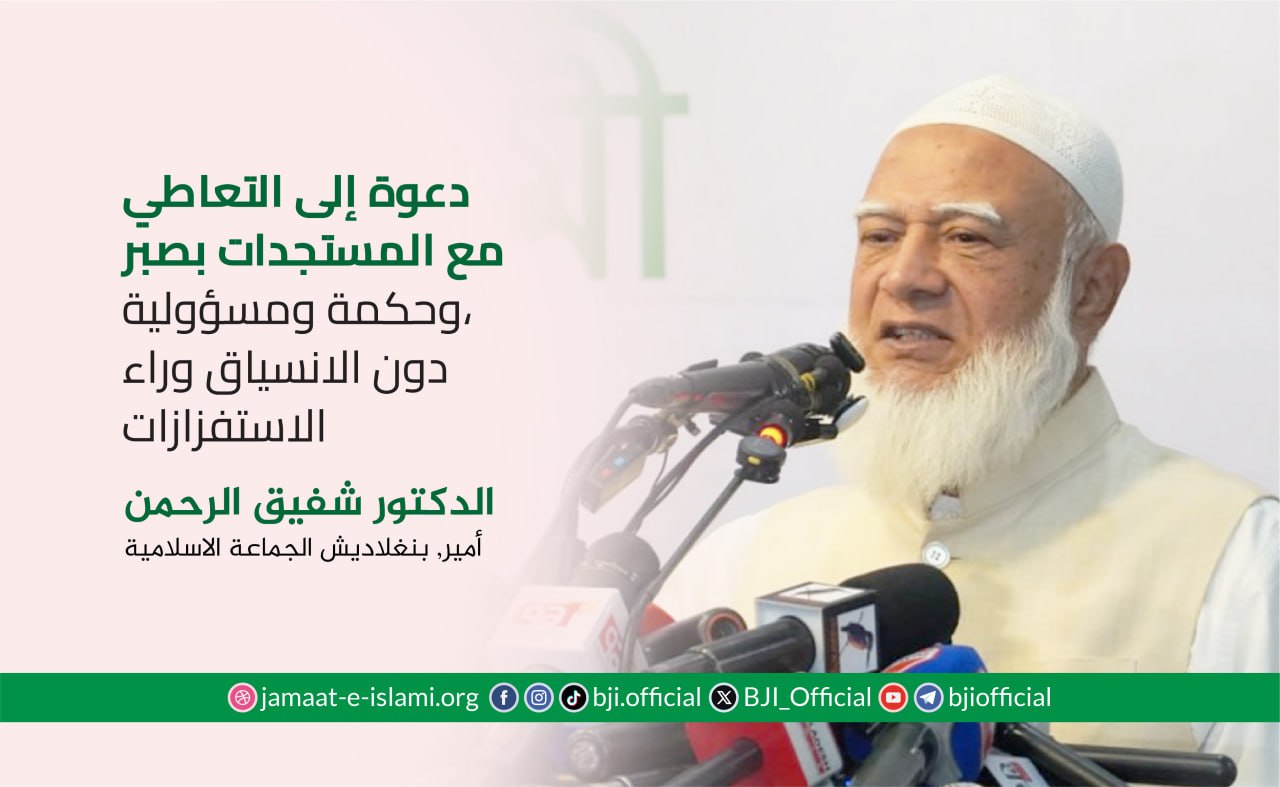 أكد أمير الجماعة الإسلامية في بنغلاديش، الدكتور شفيق الرحمن، أن الجماعة لن تغري الأمة بوعود زائفة ولا تطلق تعهدات تتجاوز طاقتها، مشددا على أن ما سيطرح أمام الشعب هو برامج واقعية وخطط قابلة للتنفيذ، ستتحول إلى واقع ملموس متى ما حظيت بثقة الأمة وتعاونها
