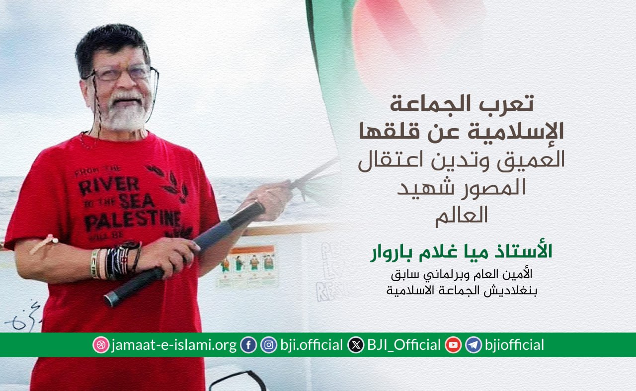 واختتم تصريحه بالقول، إن واجب المجتمع الدولي اليوم أن يتحرك بجدية وحزم لوقف عربدة الاحتلال، وضمان وصول قوافل الإغاثة إلى غزة بسلام، وإنقاذ مئات الآلاف من الجوعى والمحاصرين هناك. كما نطالب بالإفراج الفوري وغير المشروط عن المصور البنغلاديشي شهيد العالم وجميع النشطاء الإنسانيين المعتقلين، وبضمان سلامتهم الكاملة. إننا نهيب بالأحرار في كل أنحاء العالم أن ينهضوا بواجبهم الأخلاقي والإنساني في نصرة المظلومين ودعم قضية فلسطين العادلة