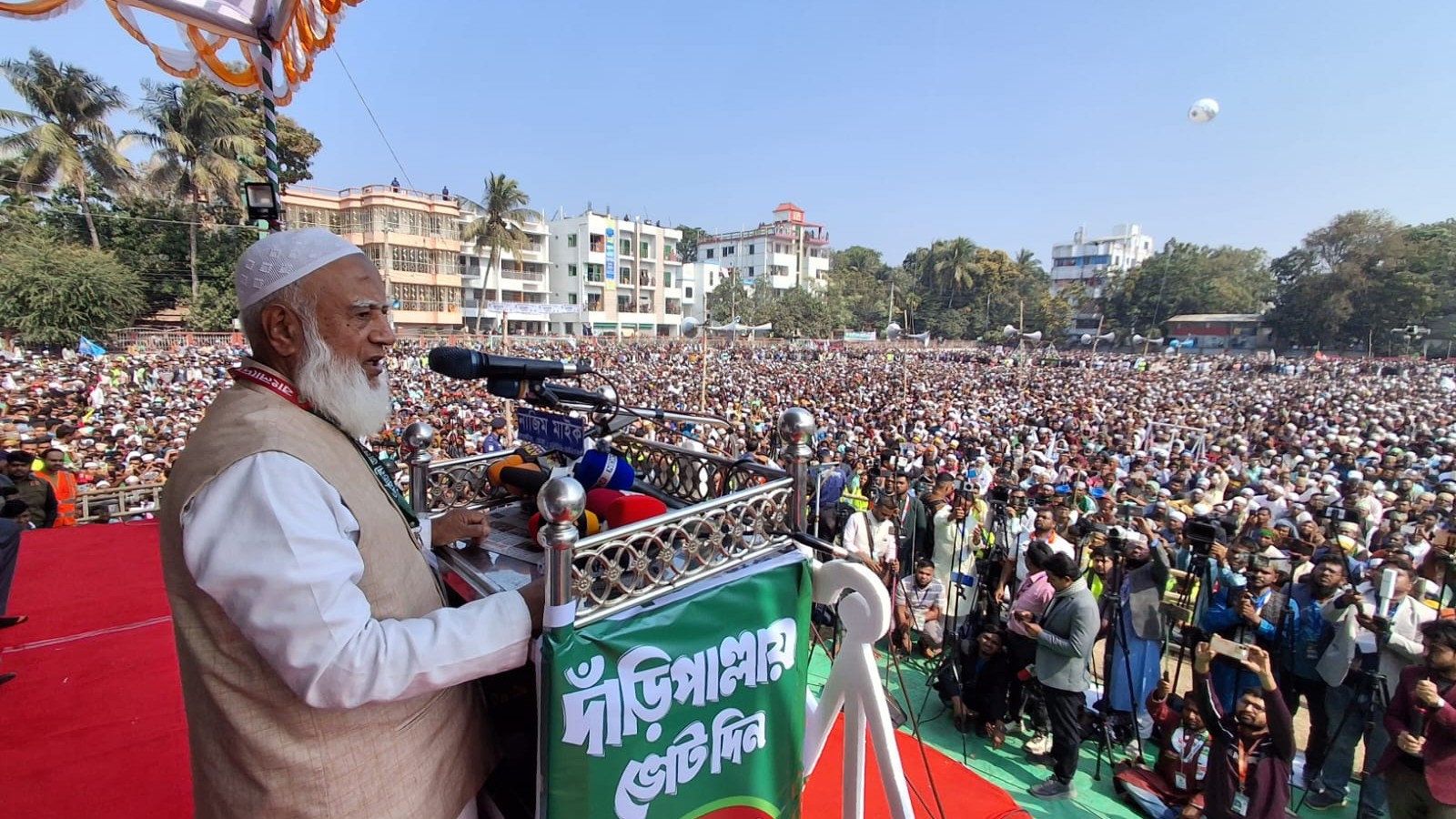 দ্রব্যমূল্য নিয়ে তিনি বলেন, দ্রব্যমূল্য কমানো যায়নি দুটি কারণে- চাঁদাবাজ ও সিন্ডিকেট। আমরা কঠোর হাতে চাঁদাবাজি উৎখাত করব এবং সিন্ডিকেট ভেঙে চুরমার করে দেব। আজাদি নিশ্চিত করার জন্য আমাদের প্রথম ভোট হবে ‘হ্যাঁ’। আমরা সবাইকে ‘হ্যাঁ’ ভোটের পক্ষে আহ্বান জানাব। দ্বিতীয়ত দাঁড়িপাল্লায় ভোট দেব, কারণ এটি ইনসাফের প্রতীক। আমরা বিভক্ত বাংলাদেশ চাই না। তাই আমরা ১১ দল ঐক্যবদ্ধ হয়েছি। আমাদের মা-বোনেরা স্বপ্ন দেখতে শুরু করেছেন। ইনসাফের ভিত্তিতে এই দেশ গঠন করা হবে। মুসলমানদের মধ্যে বিভিন্ন মত আছে। ইনশাআল্লাহ, সবাইকে নিয়ে বসে দেশকে কীভাবে এগিয়ে নেওয়া যায় সে সিদ্ধান্ত নেওয়া হবে।