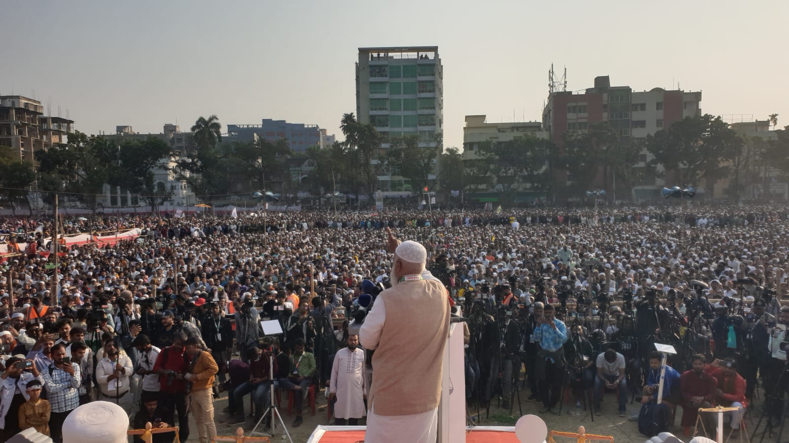 ডা. শফিকুর রহমান বলেন, আজ আমি এখানে জামায়াতের পক্ষে কথা বলার জন্য দাঁড়াইনি। বিগত ১৬ বছর যেসব মায়ের বাবার বুক খালি করা হয়েছে, যেসব বোনের কাছ থেকে স্বামীকে কেড়ে নেওয়া হয়েছে, যেসব শিশুকে পিতৃহারা করা হয়েছে- আমি তাদের পক্ষে কথা বলার জন্য এখানে দাঁড়িয়েছি। ১৮ কোটি মানুষের পক্ষে কথা বলার জন্য দাঁড়িয়েছি। আওয়ামী লীগের সমালোচনা করে তিনি বলেন, তারা সিন্ডিকেট করে চাঁদাবাজির মাধ্যমে, ব্যাংক লুট করে, শেয়ারবাজার লুটপাট করে বিদেশে বেগমপাড়া বানিয়েছে।