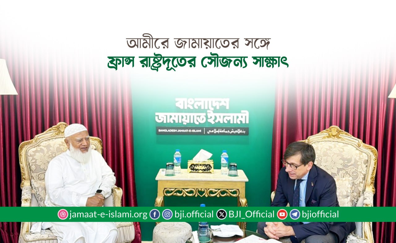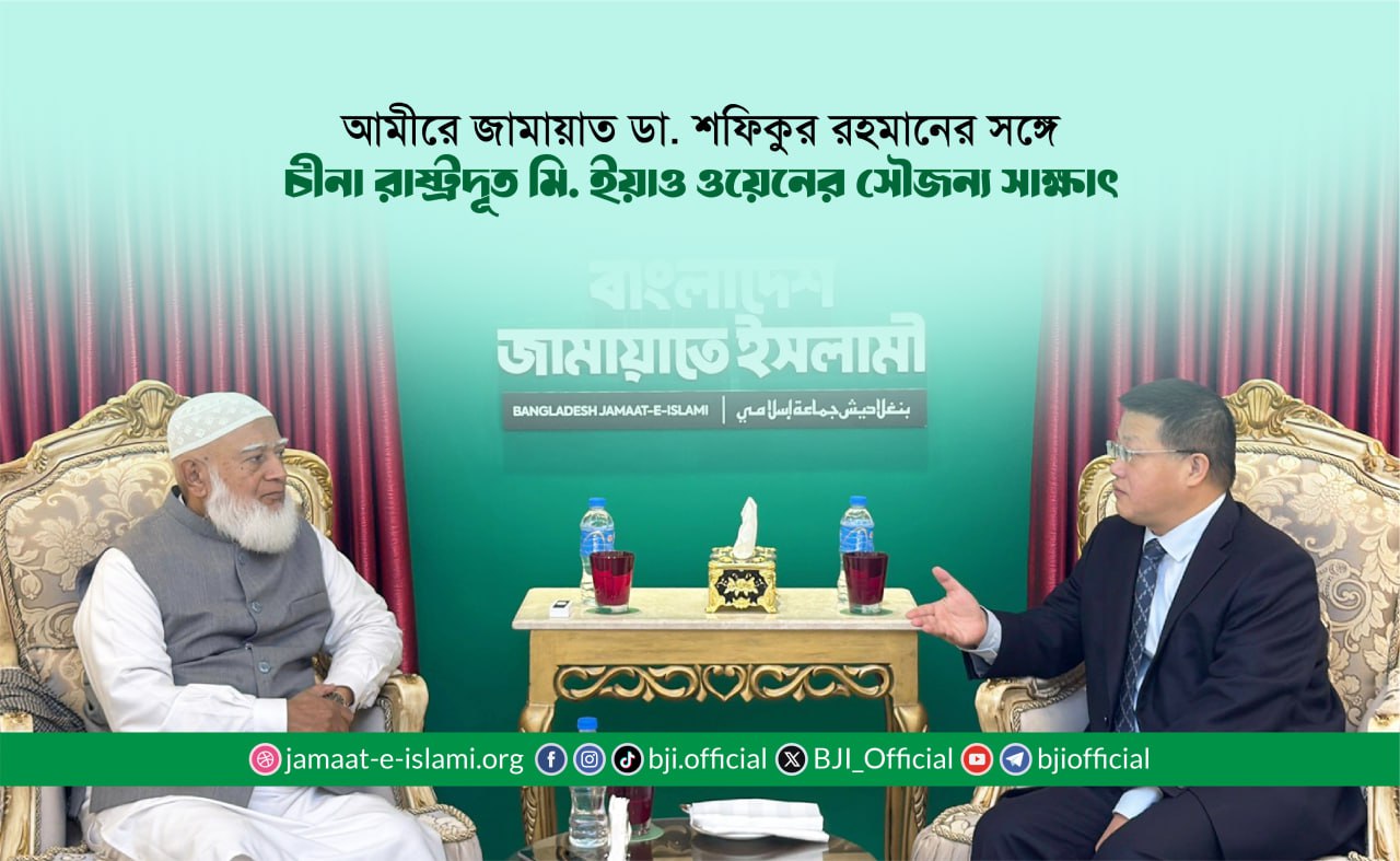 ১৬ সেপ্টেম্বর (মঙ্গলবার) সকাল ১০টায় বাংলাদেশ জামায়াতে ইসলামীর আমীর ডা. শফিকুর রহমানের সঙ্গে তাঁর বসুন্ধরাস্থ কার্যালয়ে বাংলাদেশে নিযুক্ত মান্যবর চায়না ...