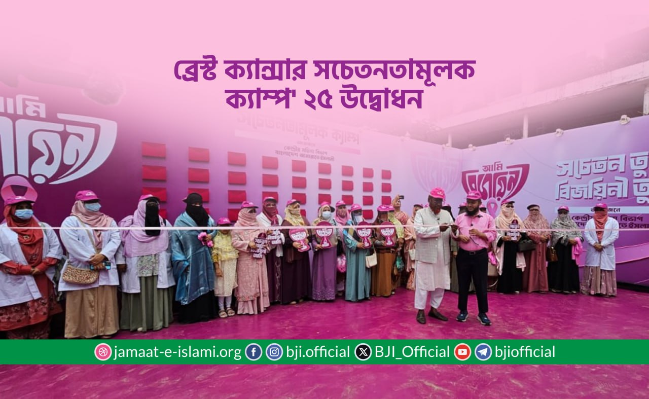 বিশ্বব্যাপী অক্টোবর মাসকে ‘ব্রেস্ট ক্যানসার সচেতনতা’ মাস রূপে পালিত হয়, এরই ধারাবাহিকতায় বাংলাদেশ জামায়াতে ইসলামী কেন্দ্রীয় মহিলা বিভাগের উদ্যোগে দেশব্যাপী ...