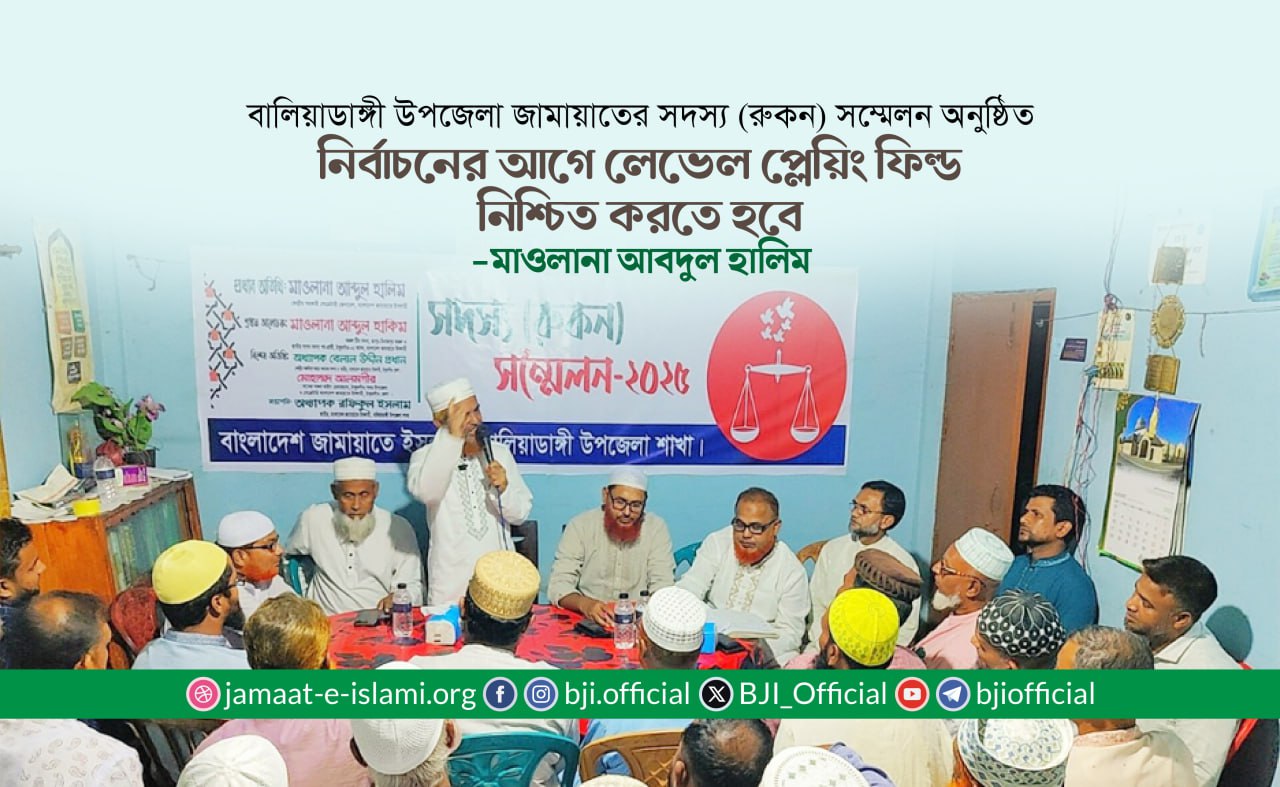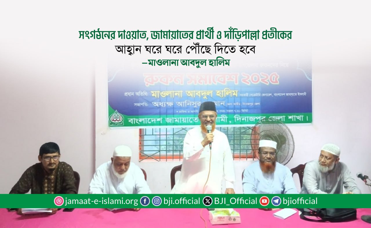 বাংলাদেশ জামায়াতে ইসলামীর সহকারী সেক্রেটারি জেনারেল মাওলানা আবদুল হালিম বলেন, “মানুষের মৌলিক অধিকার রক্ষাসহ ইসলামের অনুশাসন প্রচার ও প্রতিষ্ঠায় সদস্য ...
