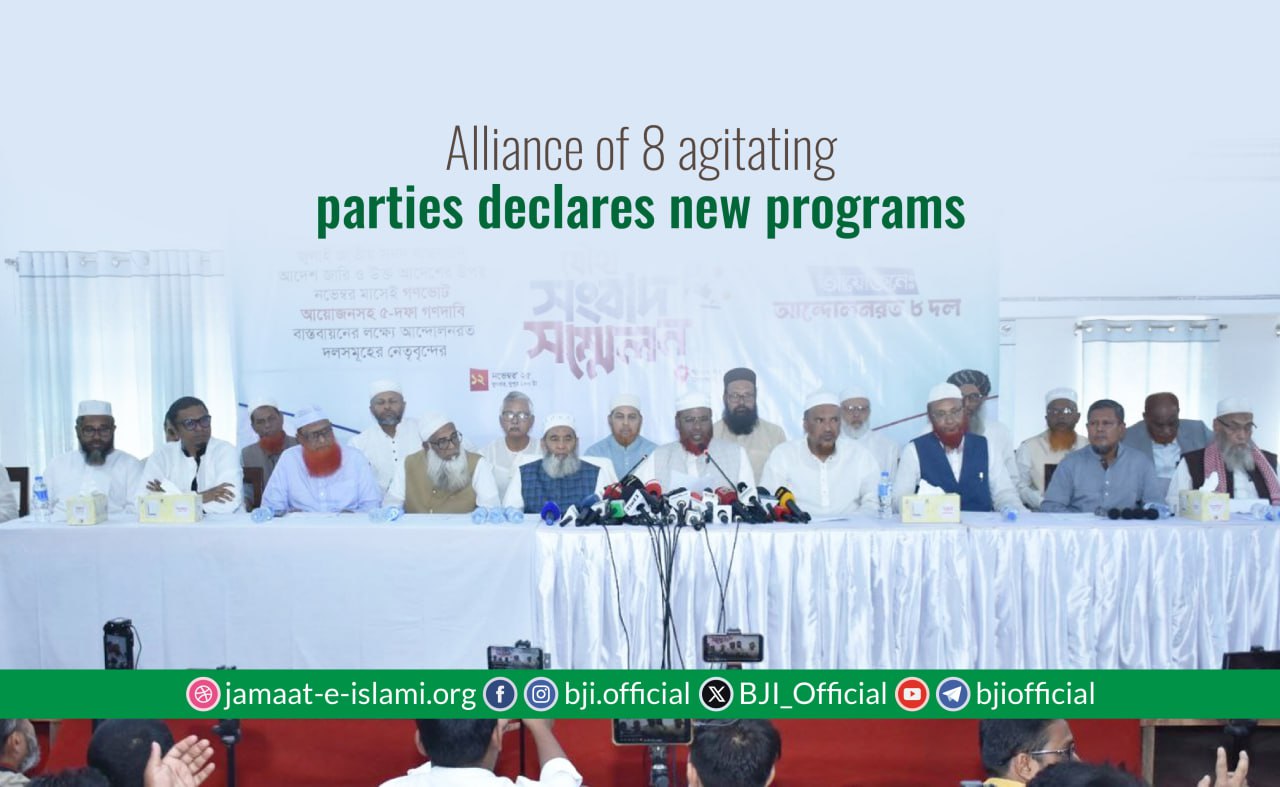 On Wednesday, 12 November, at 11:00 a.m., a joint meeting was held at the central office of Bangladesh Jamaat-e-Islami on behalf of the alliance of 8 agitating parties to press for the issuance of the July National Charter Implementation Order and the realization of the five-point mass demand, including holding a referendum before the national election. Following the meeting, a press briefing was held at 1:30 p.m. at the Al-Falah Auditorium in Moghbazar.