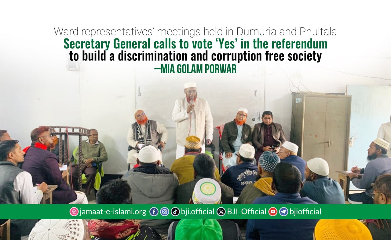 Bangladesh Jamaat-e-Islami’s Secretary General and former Member of Parliament, Mia Golam Porwar said, “By reforming the existing state system, we—together with political parties—have formulated reform proposals to establish a system of good governance, balance of power, a corruption-free and discrimination-free state structure that safeguards people’s rights. This framework has been accepted by the nation as the July Charter. It is now going to be placed before the people in an upcoming referendum to seek public opinion. In this referendum, we are calling on the people to say ‘Yes’ in favor of reform. ‘Yes’ must be made victorious. Making ‘Yes’ victorious ...