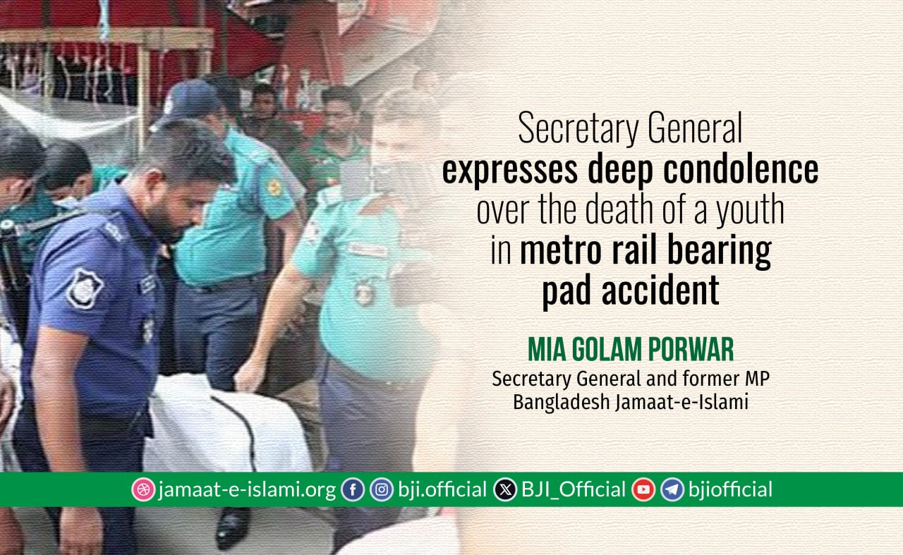 Secretary General expresses deep condolence over the death of a youth in metro rail bearing pad accident