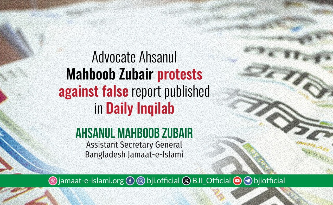 Ahsanul Mahboob Zubair strongly condemns and protests the news published in Dainik Inqilab against Jamaat-e-Islami