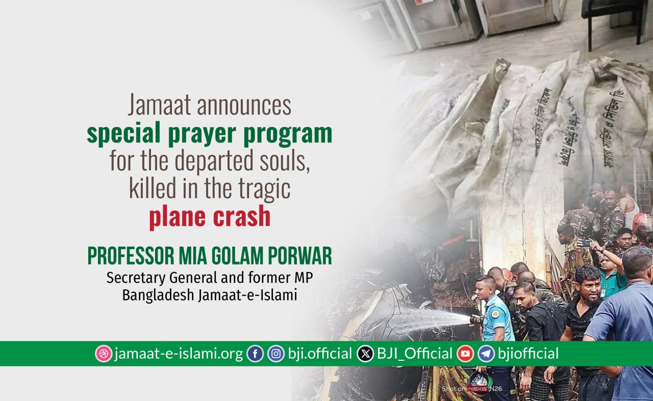Jamaat announces special prayer program for the departed souls, killed in the tragic plane crash