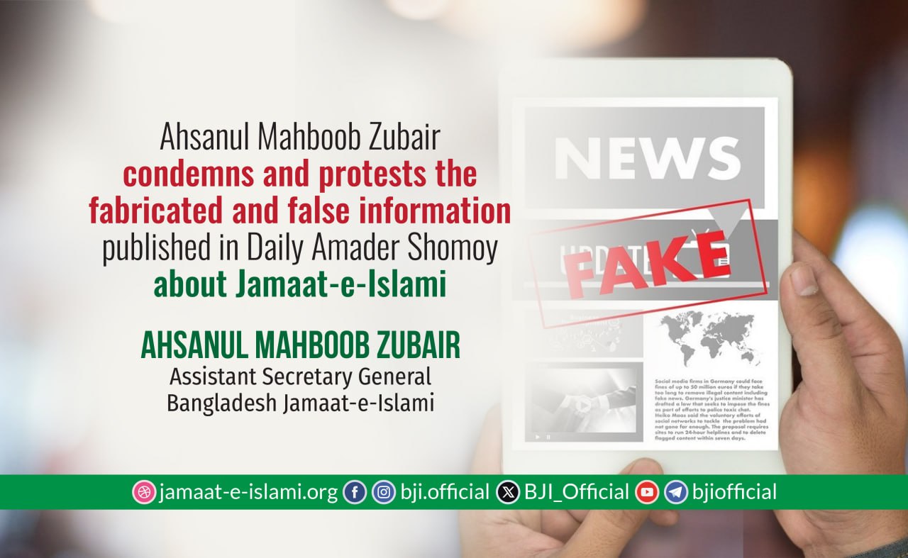 Ahsanul Mahboob Zubair condemns and protests the fabricated and false information published in Daily Amader Shomoy about Jamaat-e-Islami