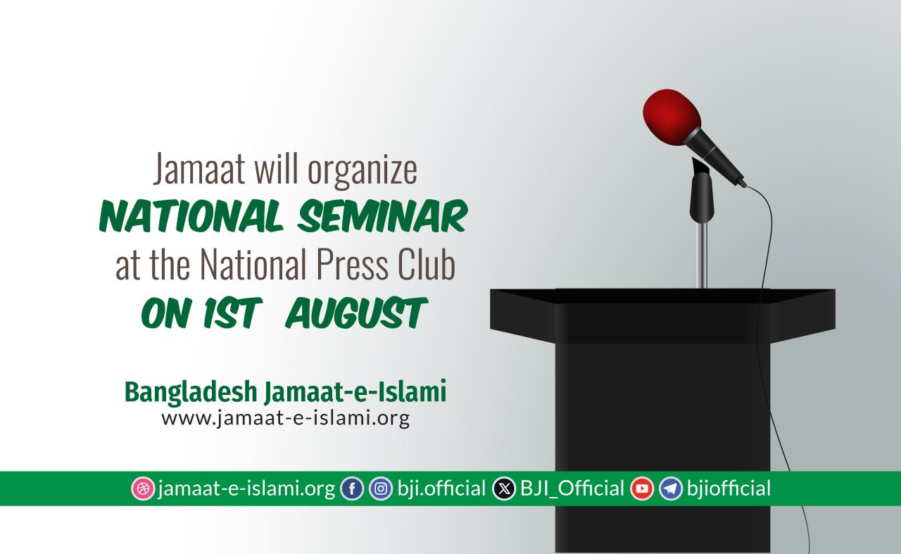 Jamaat will organize National Seminar at the National Press Club on 1st August