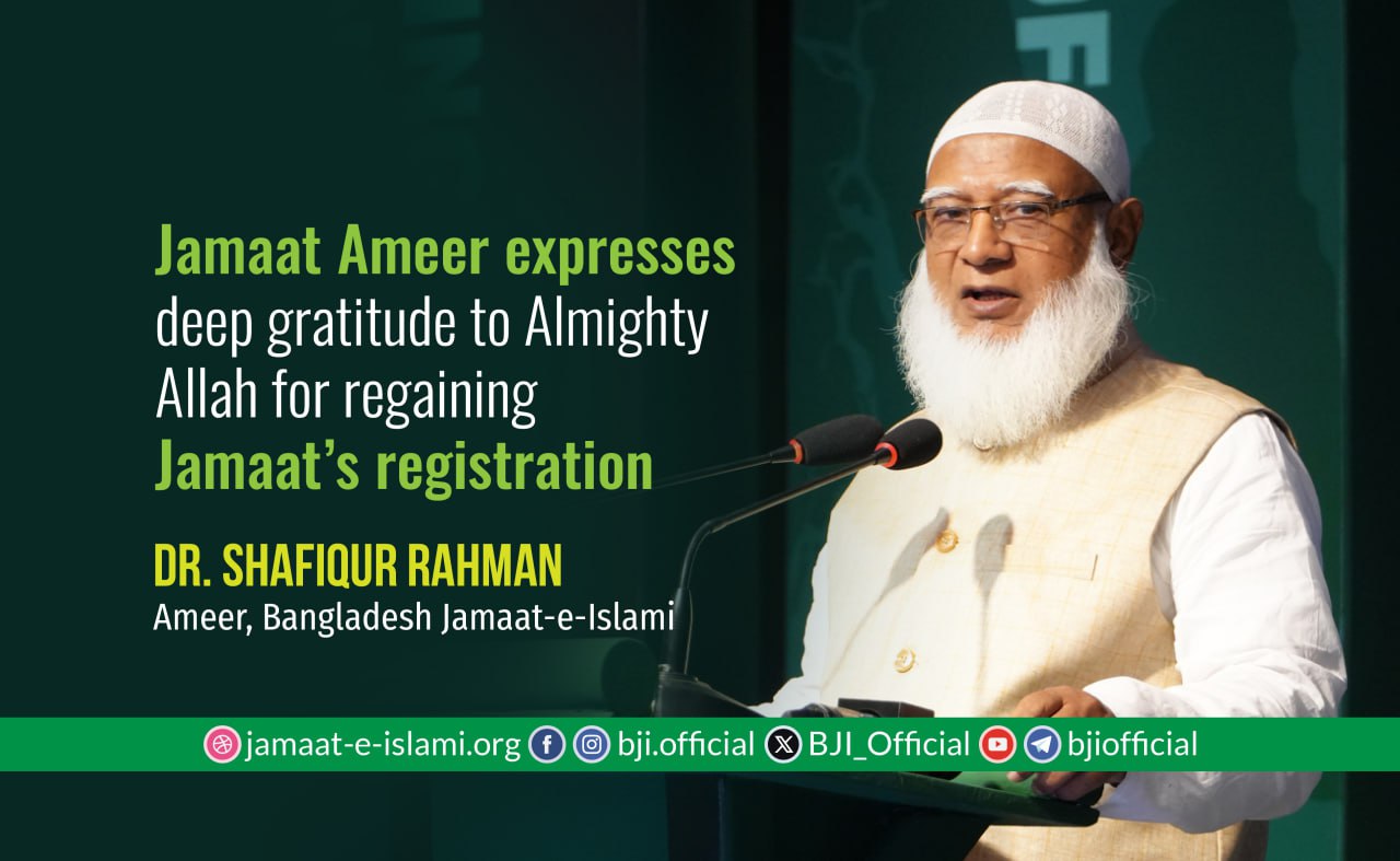 Jamaat Ameer expresses deep gratitude to Almighty Allah for regaining Jamaat’s registration