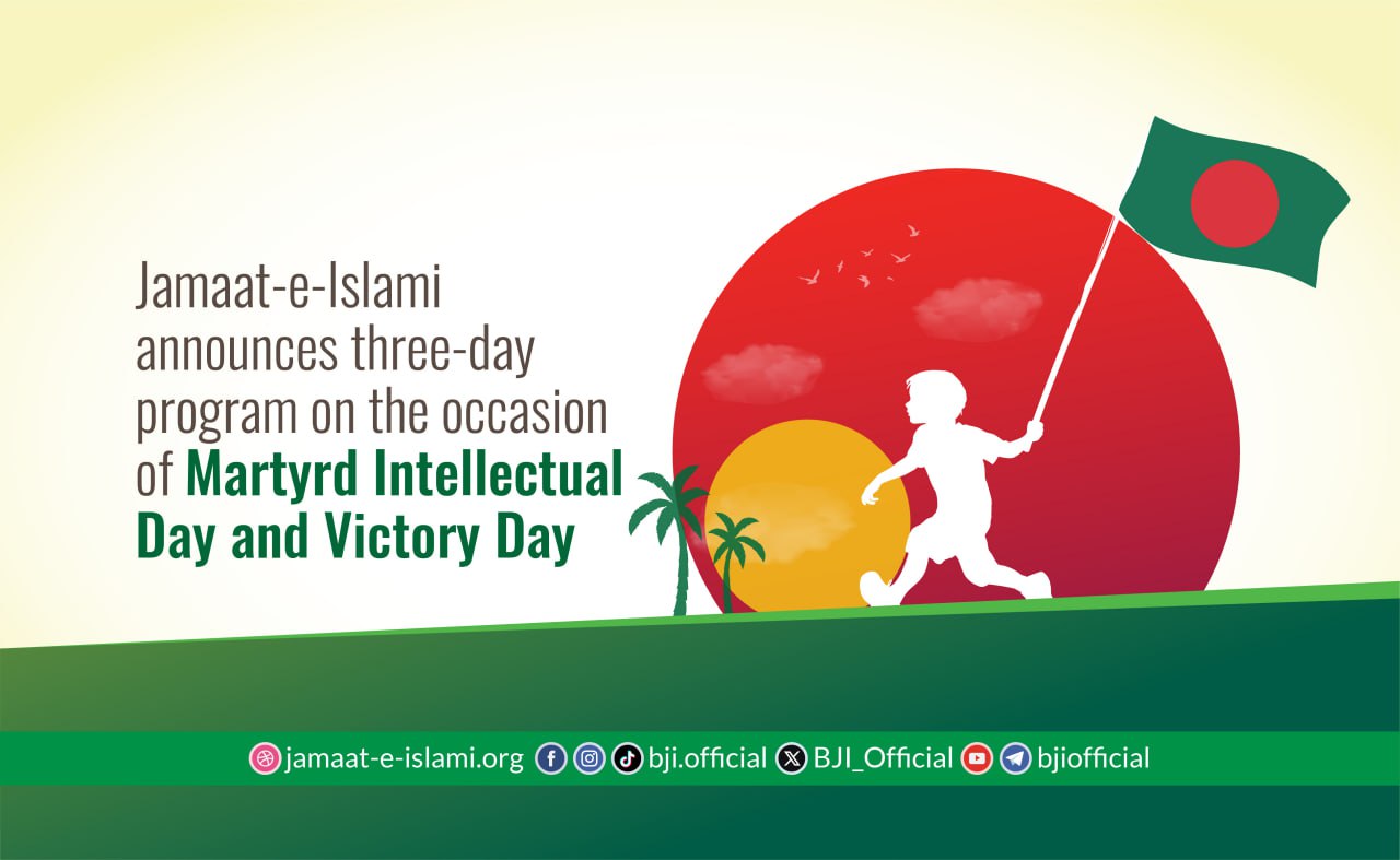 Additionally, expressing firm commitment to safeguarding the country's independence and sovereignty and establishing people’s rights, Bangladesh Jamaat-e-Islami calls upon all its branch organizations and the citizens of the country to observe 'Victory Day' on 16 December with due dignity through discussions, rallies, and prayer gatherings.