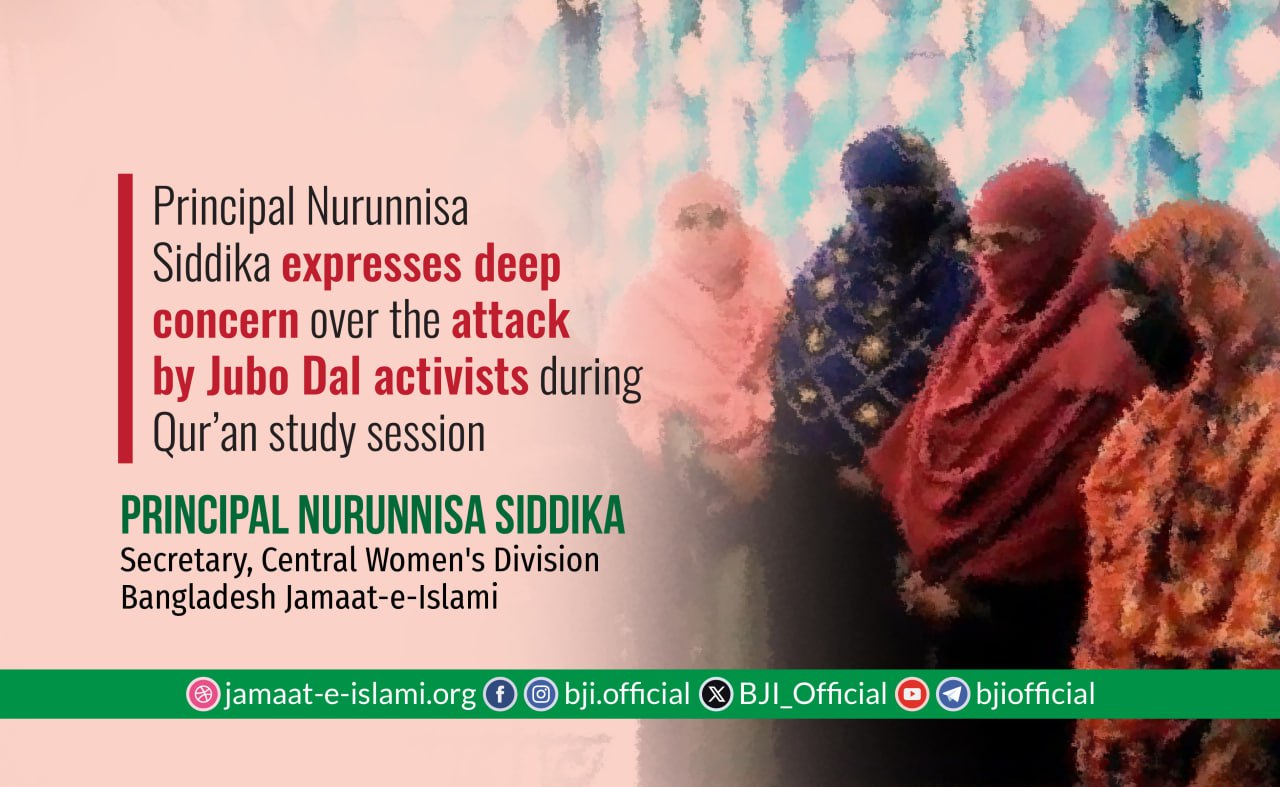 Central Women’s Affairs Secretary of Bangladesh Jamaat-e-Islami Principal Nurunnisa Siddika has expressed deep concern, outrage, and strong condemnation over the ...