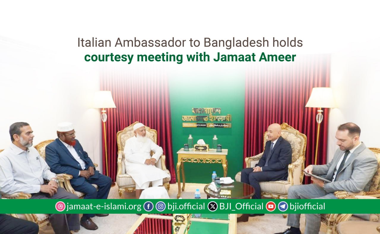 During the discussion, the Deputy Ambassador of the Italian Embassy, Mr. Federico Zamparelli, was present alongside His Excellency the Ambassador. Whereas Jamaat-e-Islami’s Secretary General and former Member of Parliament, Professor Mia Golam Porwar, and Assistant Secretary General as well as Head of the Central Publicity and Media Department, Advocate Ahsanul Mahboob Zubair accompanied the Jamaat Ameer.