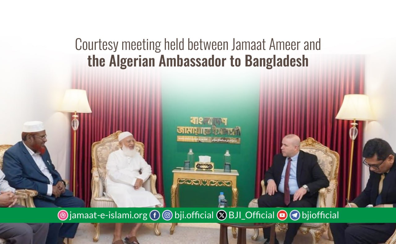 His Excellency Mr. Abdelwahab Saïdani, the Honorable Ambassador of Algeria to Bangladesh, paid a courtesy call on Bangladesh Jamaat-e-Islami's Ameer Dr. Shafiqur Rahman. The meeting took place on Wednesday (8 October) at 12 noon at Jamaat Ameer’s office in Bashundhara, Dhaka. The discussion was held in a very cordial and friendly atmosphere.