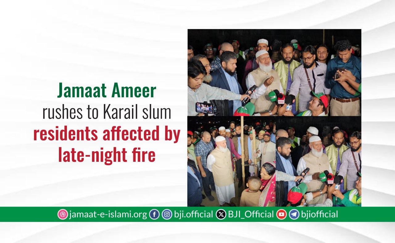 Yesterday, 25 November (Tuesday) at around 11:30 PM, Bangladesh Jamaat-e-Islami’s Ameer Dr. Shafiqur Rahman visited the areas of Karail slum in Dhaka, which have been severely affected by a devastating fire. Arriving late at night, he spoke with the affected families, inquired about their condition, and was informed about the overall losses and damages.
