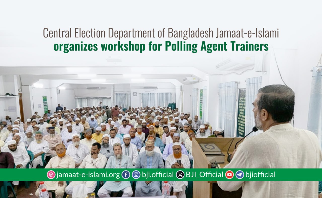 The “Polling Agent Trainers’ Workshop” program, organized by the Central Election Department of Bangladesh Jamaat-e-Islami, has been held on October 2 (Thursday) morning at Al-Falah Auditorium in Moghbazar, Dhaka. At the very beginning of the event, a Darsul Qur’an (Qur’anic lesson) was presented by the party’s Assistant Secretary General Maulana ATM Masum.