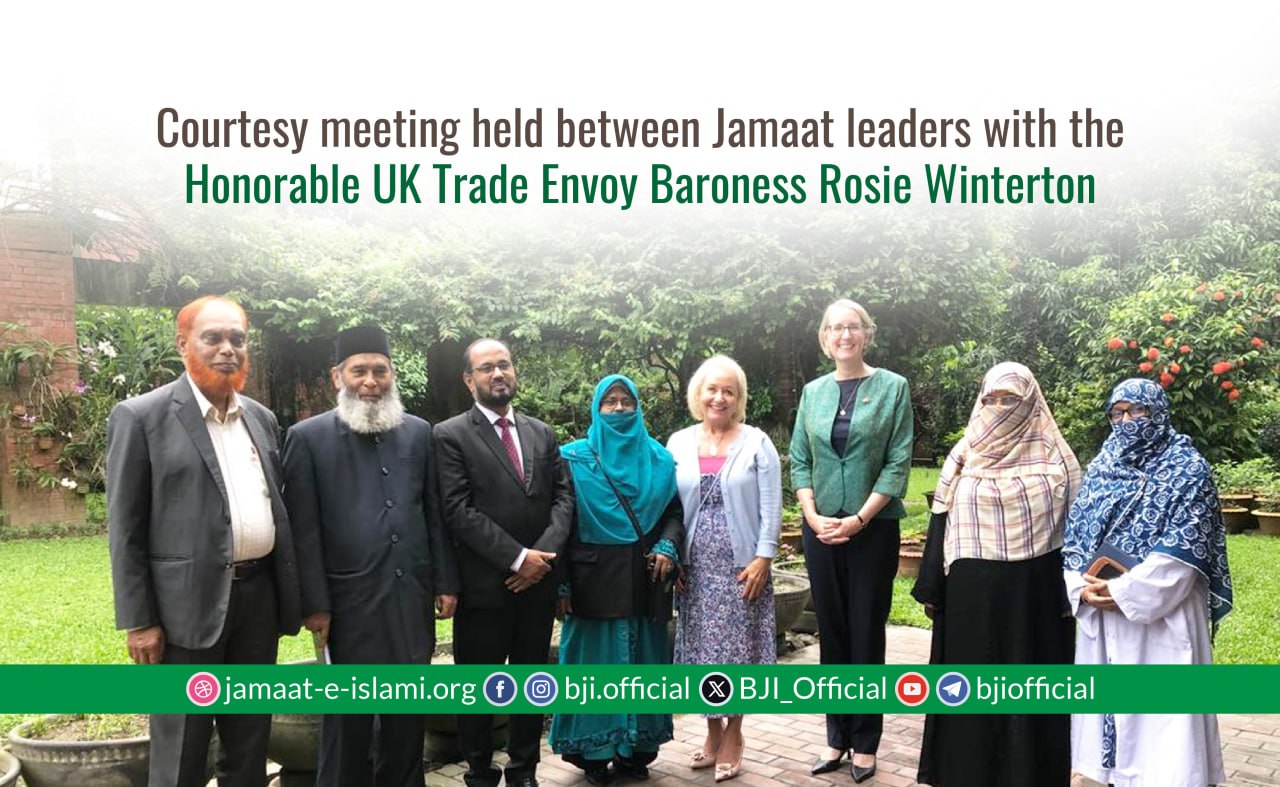 On October 6 (Monday) at 3 p.m. a high-level six-member delegation of Bangladesh Jamaat-e-Islami, led by Nayeb-e-Ameer and former Member of Parliament Professor Mujibur Rahman, met with the visiting British trade envoy Baroness Rosie Winterton, in a courtesy meeting held at the British High Commission in Dhaka. The meeting took place in a very cordial and friendly atmosphere.