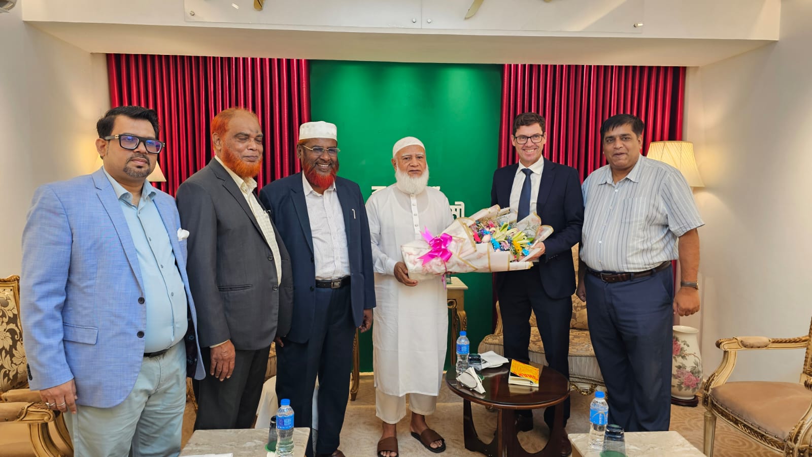 Today, Wednesday, His Excellency Mr. Hakon Arald Gulbrandsen, the Ambassador of Norway to Bangladesh, paid a courtesy call on Bangladesh Jamaat-e-Islami's Ameer Dr. Shafiqur Rahman. The meeting took place at the Ameer’s office in Bashundhara, Dhaka. Mr. Sarwar Jahan Chowdhury, the Political Adviser to the Ambassador, was also present on the occasion.