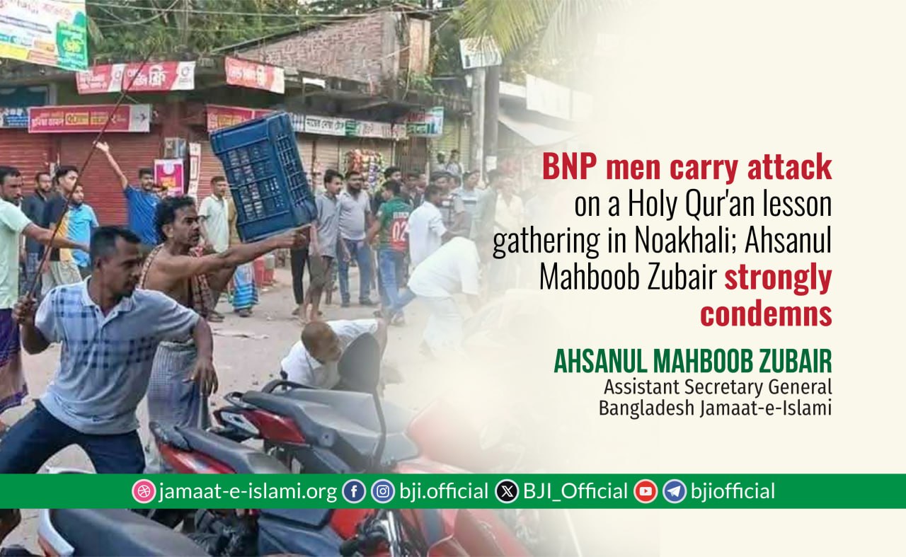 Assistant Secretary General of Bangladesh Jamaat-e-Islami and Head of the Central Media and Propagation Department Advocate Ahsanul Mahboob Zubair on 20 October, 2025 issued a statement strongly condemning and protesting the attack by BNP activists on a Holy Qur'an lesson gathering organized by Islami Chhatrashibir in Noakhali district.