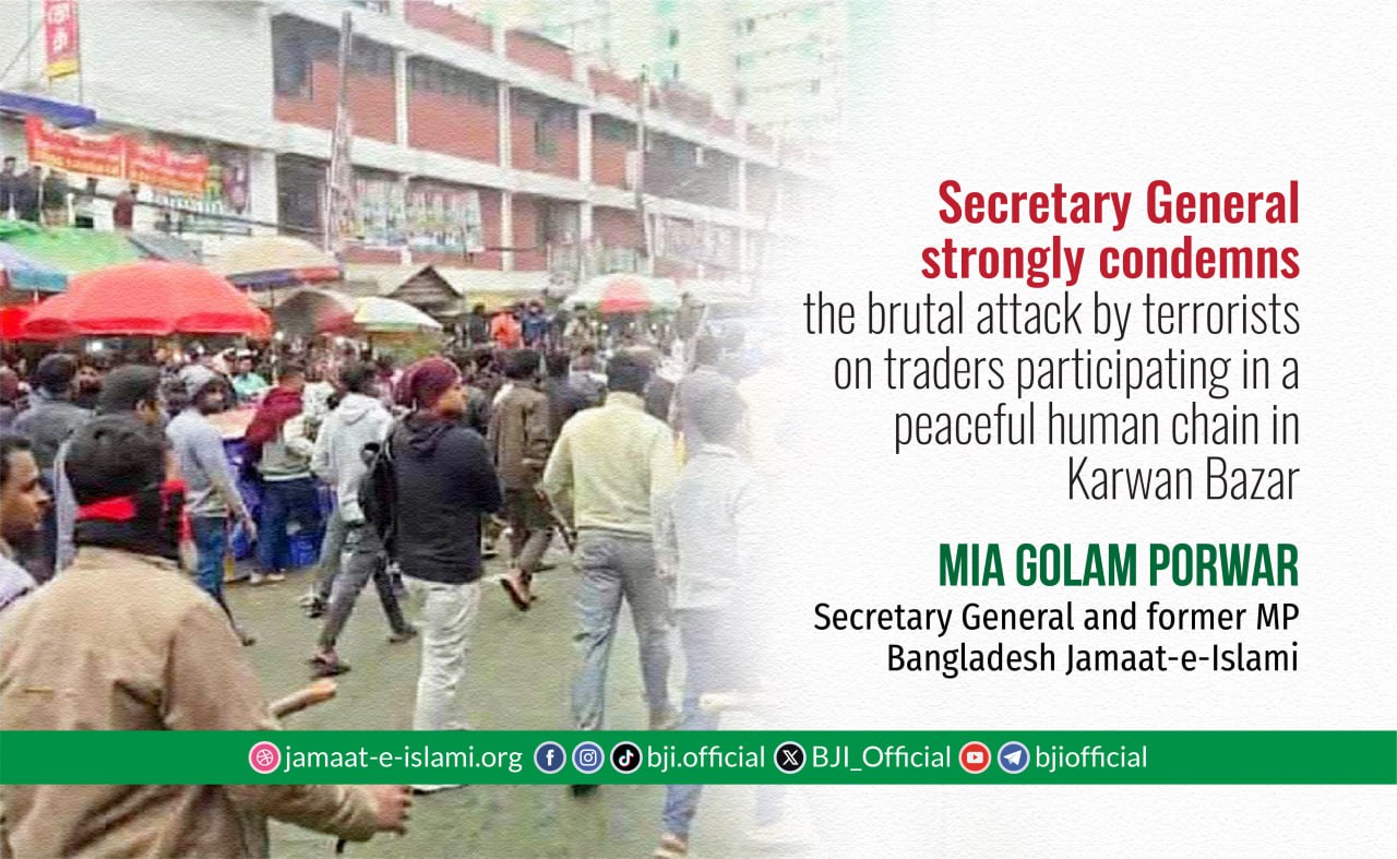 Bangladesh Jamaat-e-Islami's Secretary General and former MP Mia Golam Porwar today, 29 December, issued a statement strongly condemning and protesting the attack by terrorists on traders who were participating in a peaceful human chain against syndicate-based extortion at Karwan Bazar of the capital.