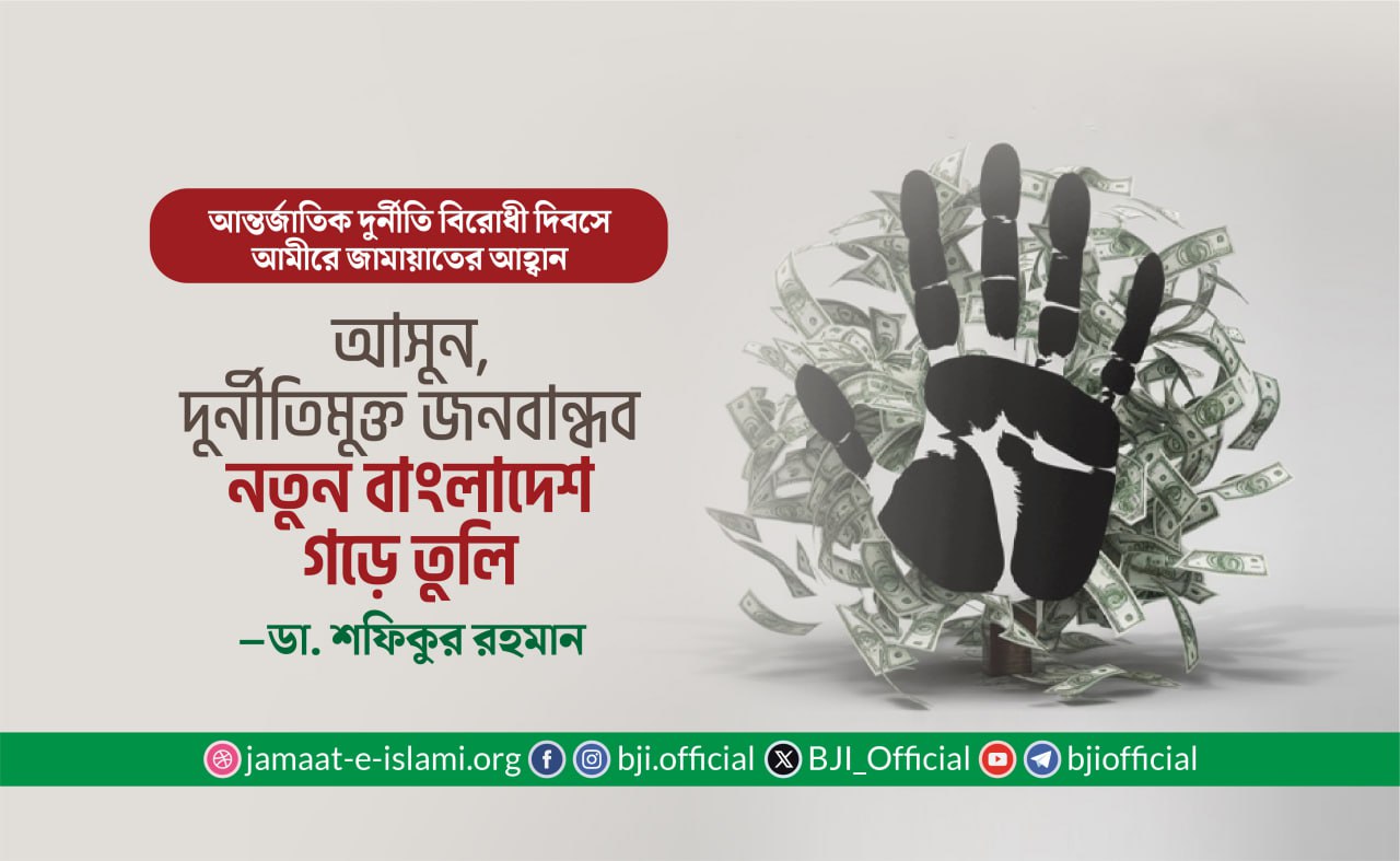 করোনা ভাইরাসের ব্যাপক বিস্তৃতির প্রেক্ষাপটে পারস্পরিক সাহায্য-সহযোগিতার মাধ্যমে করোনা ভাইরাসের সংক্রমণ থেকে দেশ ও জাতিকে নিরাপদ করার লক্ষ্যে ২৬ মার্চ মহান স্বাধীনতা ও জাতীয় দিবস পালনের আহ্বান জানিয়ে বাংলাদেশ জামায়াতে ইসলামীর আমীর ডা. শফিকুর রহমান আজ ২৪ মার্চ ২০২০ নিম্নোক্ত বিবৃতি প্রদান করেছেনঃ-