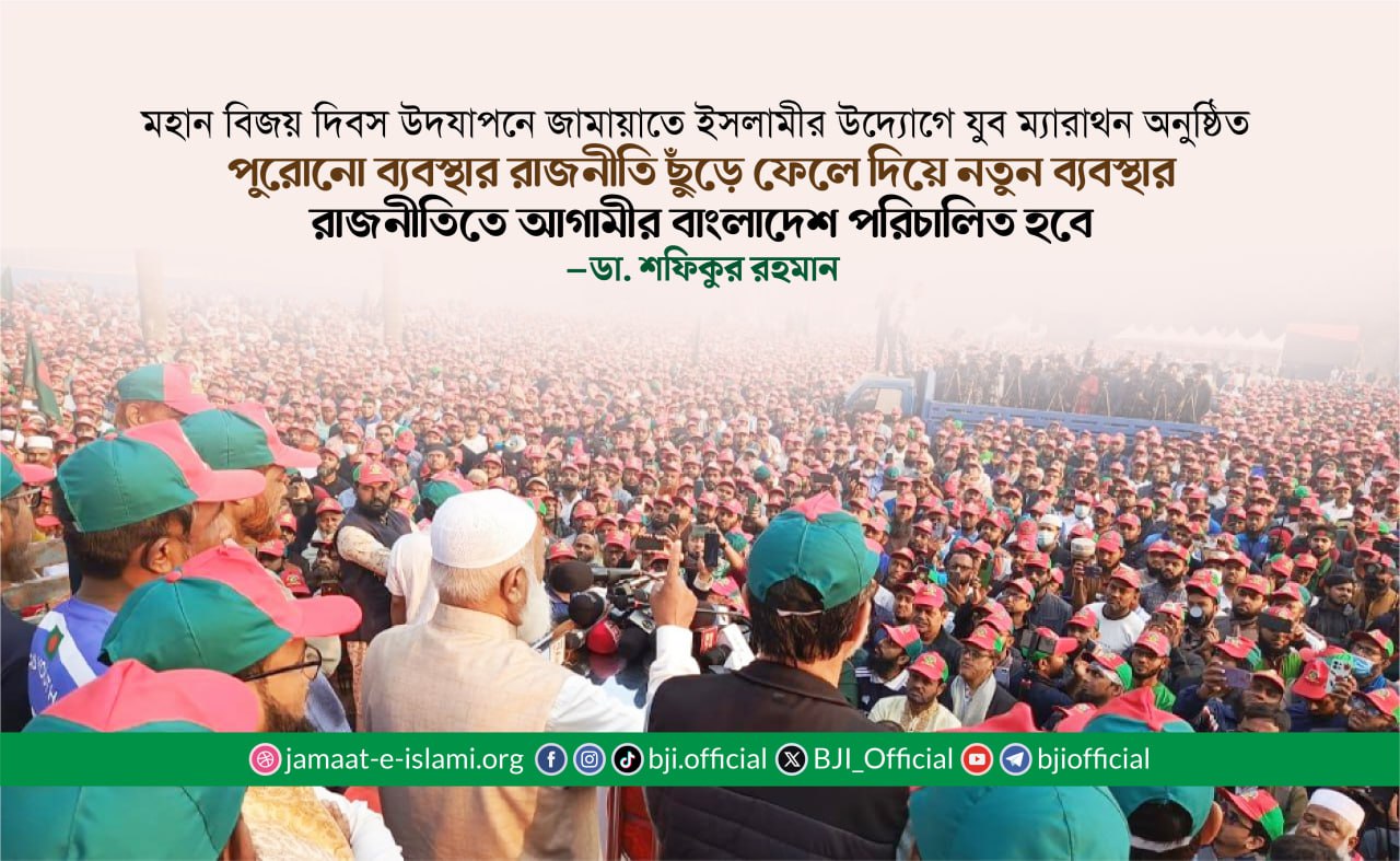 বাংলাদেশ জামায়াতে ইসলামীর আমীর ডা. শফিকুর রহমান বলেছেন, “সামর্থ্যের বাইরে গিয়ে কোনো মিথ্যা আশ্বাস বাংলাদেশ জামায়াতে ইসলামী দেবে না। যেসব পরিকল্পনা আমাদের পক্ষে বাস্তবায়ন করা সম্ভব, কেবল সেই পরিকল্পনাই জাতির সামনে উপস্থাপন করা হবে এবং জাতির সহযোগিতা পেলে তা বাস্তবায়নও করা হবে।”