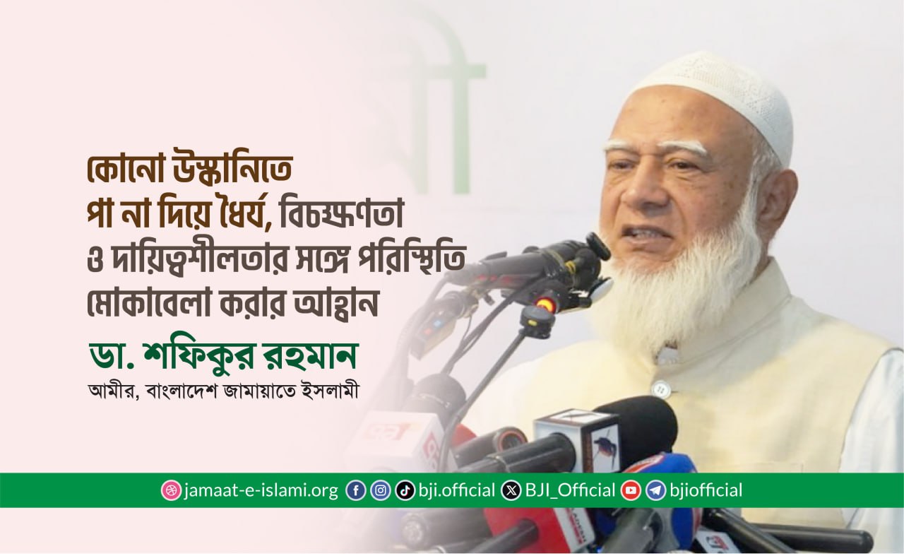 করোনাভাইরাসের বিস্তৃতি ও এর হাত থেকে দেশ ও জাতিকে হেফাজত করার জন্য মহান আল্লাহর কাছে দোয়ার আহ্বান জানিয়ে বাংলাদেশ জামায়াতে ইসলামীর আমির ডাঃ শফিকুর রহমান ৯ মার্চ প্রদত্ত এক বিবৃতিতে বলেন, “বিশ্বব্যাপী করোনা ভাইরাসের বিস্তৃতিতে আমরা উদ্বিগ্ন। বাংলাদেশেও এ ভাইরাসে আক্রান্ত হওয়ার খবর প্রচারিত হয়েছে। ফলে জনগণের মধ্যে ব্যাপক উৎকন্ঠা বিরাজ করছে। বিপদ-আপদ আল্লাহর পক্ষ থেকে আসে আর আল্লাহই তা নিরাময় করেন। মহান আল্লাহ ঘোষণা করেছেন, ‘যখন মুমিনগণ বিপদে পতিত হয়, তখন বলে, নিশ্চয় আমরা সবাই আল্লাহর জন্য এবং আমরা সবাই তাঁরই সান্নিধ্যে ফিরে যাবো।’ (বাকারা-১৫৫)