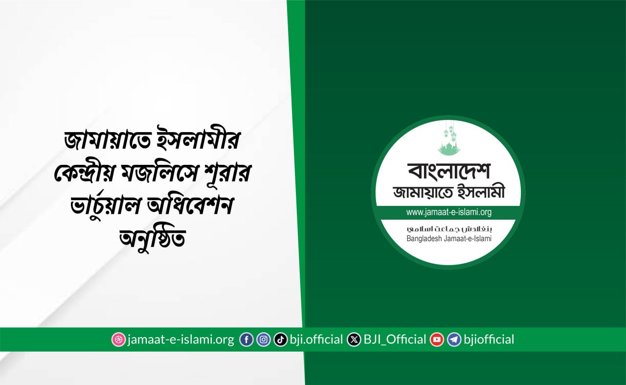 আজ ১৮ জানুয়ারি রবিবার বিকালে বাংলাদেশ জামায়াতে ইসলামীর আমীর ডা. শফিকুর রহমানের সভাপতিত্বে কেন্দ্রীয় মজলিসে শূরার অধিবেশন ভার্চুয়ালি অনুষ্ঠিত হয়েছে।