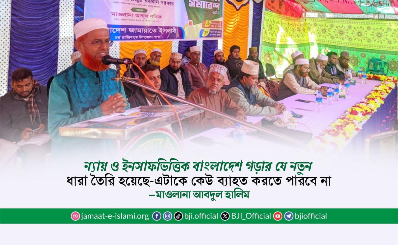 মাওলানা আবদুল হালিম আরও বলেন, জামায়াতের বিরুদ্ধে নতুন নতুন কথা বলা হয়। বর্তমানে জামায়াতের পক্ষে মানুষের মধ্যে যে সাড়া তৈরি হয়েছে, ৮ দলের পক্ষে যে অবস্থা তৈরি হয়েছে এবং ন্যায় ও ইনসাফভিত্তিক বাংলাদেশ গড়ার যে নতুন ধারা তৈরি হয়েছে-এগুলোকে কেউ ব্যাহত করতে পারবে না ইনশাআল্লাহ।