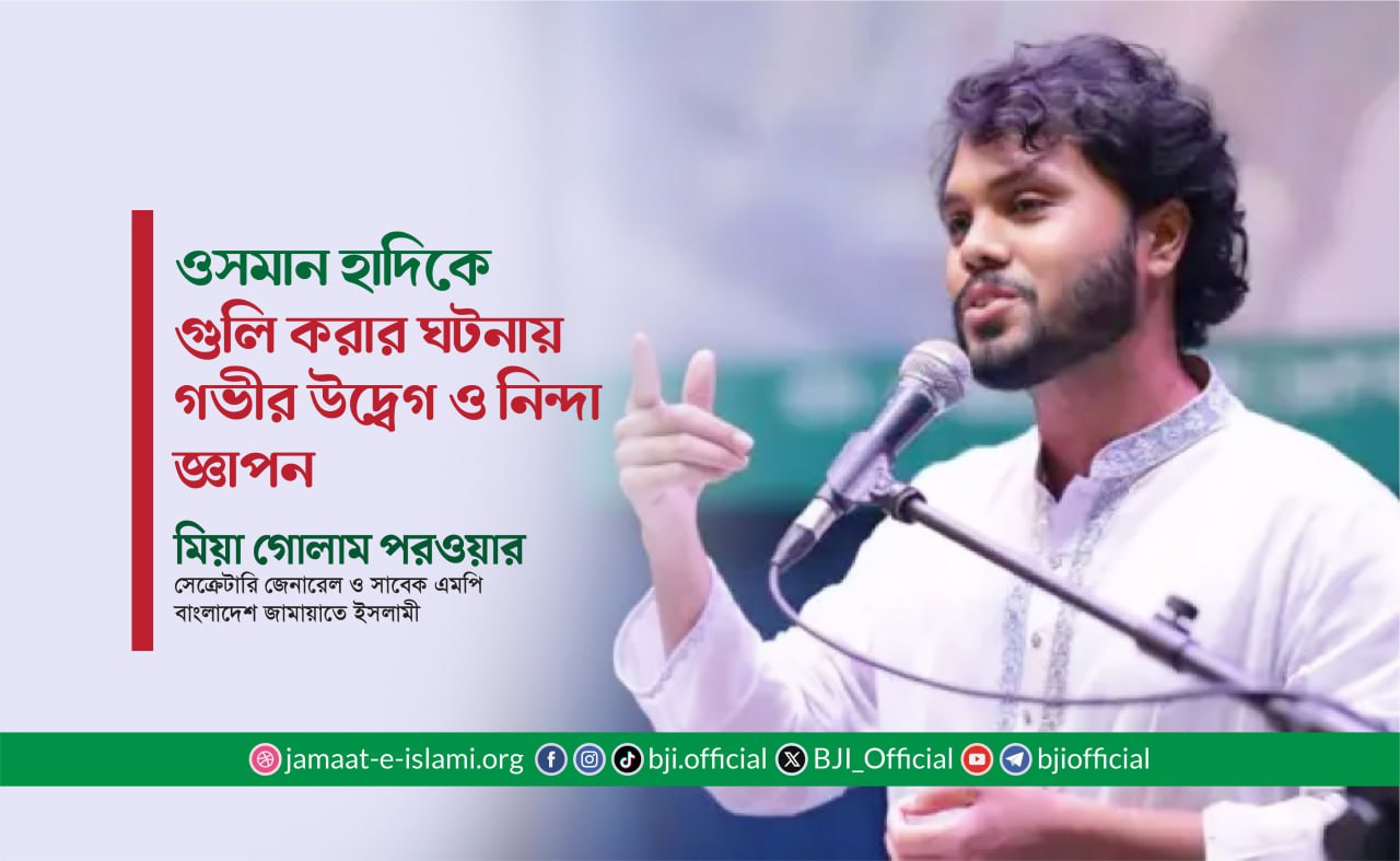 মিয়া গোলাম পরওয়ার বলেন, “এ ধরনের বর্বর হামলা দেশের শান্তিপূর্ণ রাজনৈতিক পরিবেশ ও গণতান্ত্রিক প্রক্রিয়াকে বিপর্যস্ত করে। আমরা আশা করি, সরকার ও প্রশাসন ঘটনাটিকে সর্বোচ্চ গুরুত্ব দিয়ে অপরাধীদের দ্রুত গ্রেফতার করে আইনের আওতায় এনে দৃষ্টান্তমূলক শাস্তির বিধান করবে। পাশাপাশি আমি শরিফ ওসমান হাদীর দ্রুত আরোগ্য কামনা করছি এবং তার পরিবার ও সহকর্মীদের প্রতি সহমর্মিতা জানাচ্ছি।”