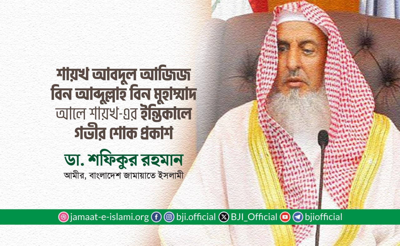 সৌদি আরবের গ্র্যান্ড মুফতি এবং সর্বোচ্চ ওলামা পরিষদের প্রধান শায়খ আব্দুল আজিজ বিন আব্দুল্লাহ আলে শেখ (রহঃ)-এর ইন্তিকালে গভীর শোক প্রকাশ করে বাংলাদেশ জামায়াতে ইসলামীর আমীর ডা. শফিকুর রহমান ২৩ সেপ্টেম্বর এক শোকবাণী প্রদান করেছেন।