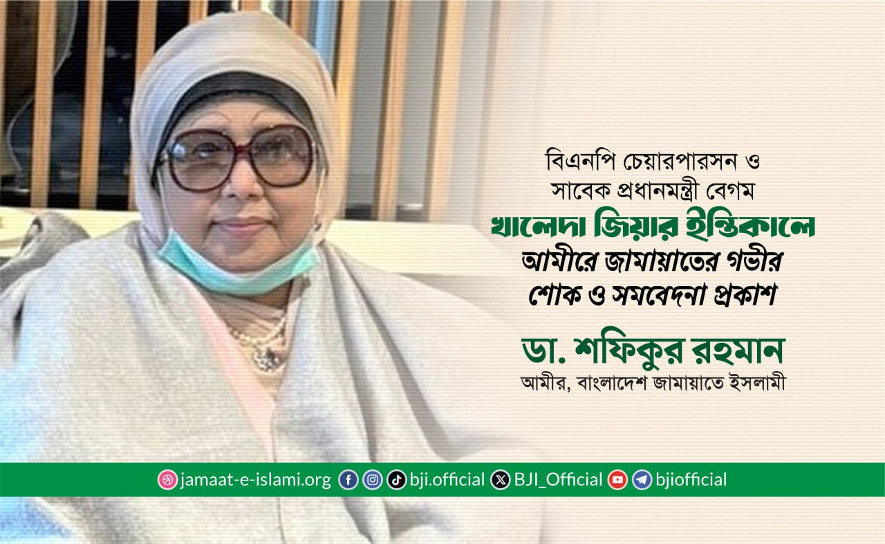 সাবেক প্রধানমন্ত্রী, বিএনপি চেয়ারপারসন বেগম খালেদা জিয়ার ইন্তিকালে গভীর শোক ও সমবেদনা প্রকাশ করে বাংলাদেশ জামায়াতে ইসলামীর আমীর ডা.শফিকুর রহমান আজ ৩০ ডিসেম্বর এক শোক বিবৃতি প্রদান করেছেন।
