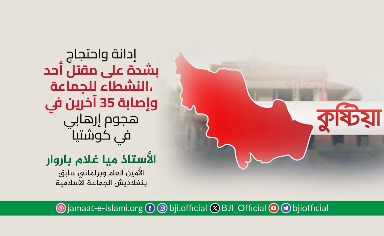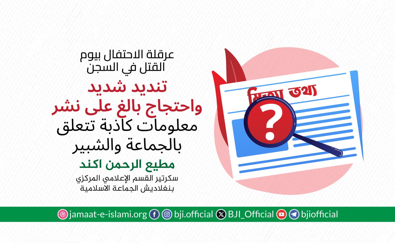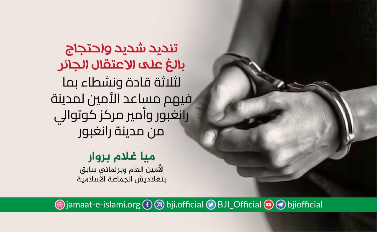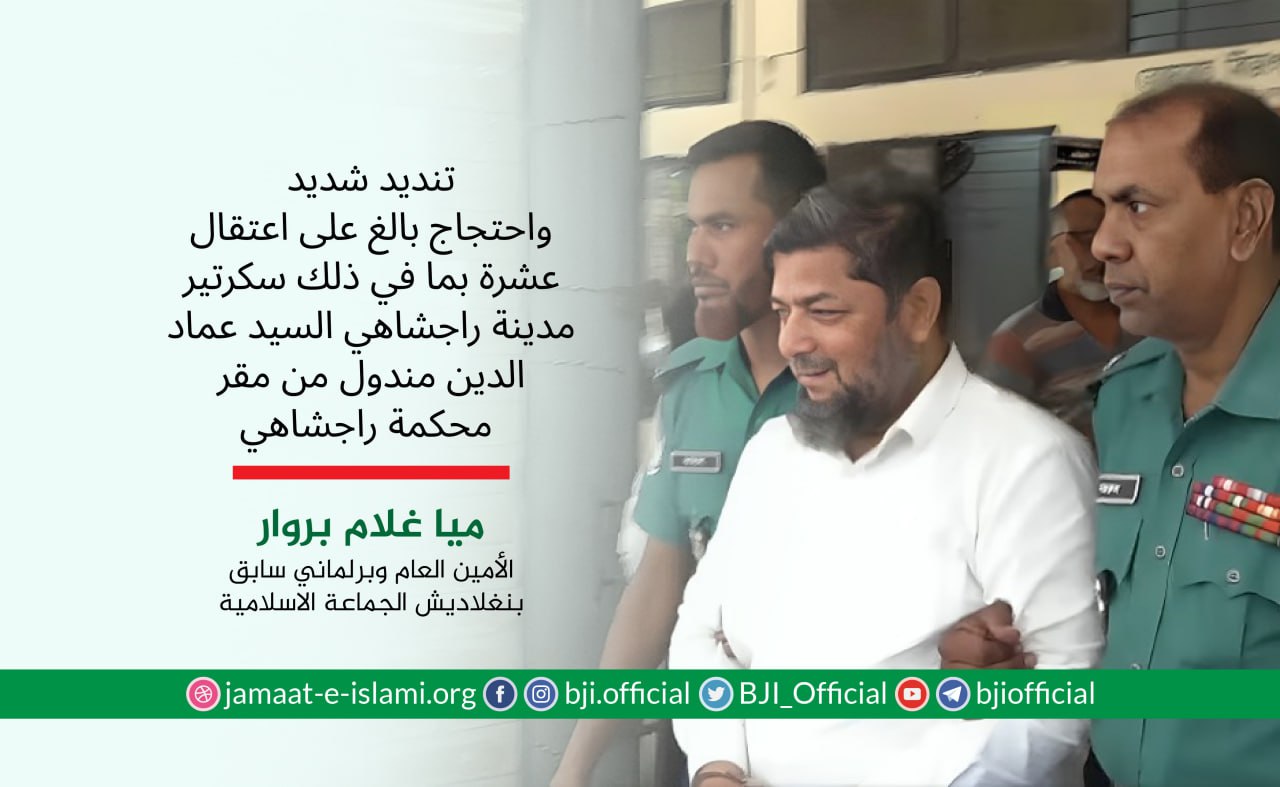 ولقد أدان الأمين العام للجماعة الإسلامية البنغلاديشيةوالنائب السابق البروفيسور ميا غلام باروار الاعتقال الجائر لسكرتير مدينة راجشاهي السيد عماد الدين ...
