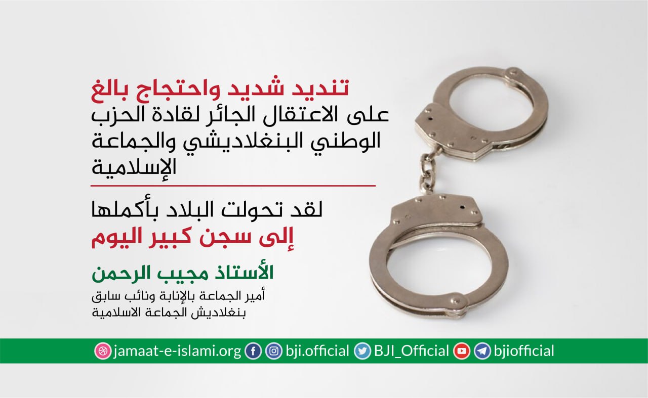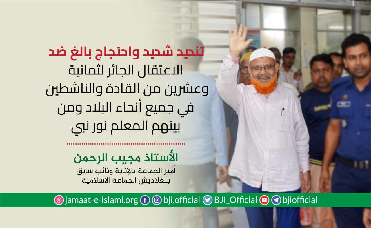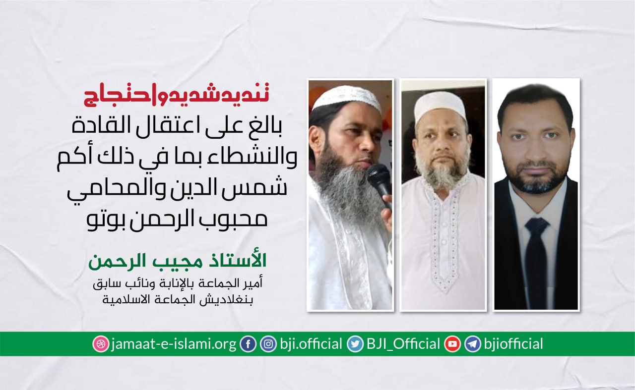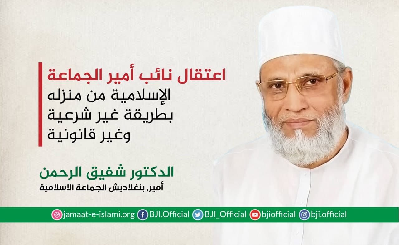 أصدرأميرالجماعةالإسلامية،الشيخالدكتورشفيقالرحمن اليوم السبت الموافق لـ 12 فبراير 2022 بيانا أدان فيه بشدة قيام الحكومة باعتقال الأمين العام للجماعة الإسلامية والنائب ...