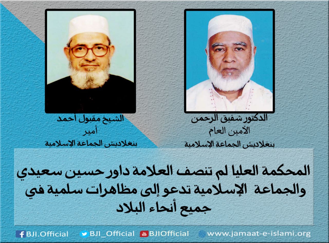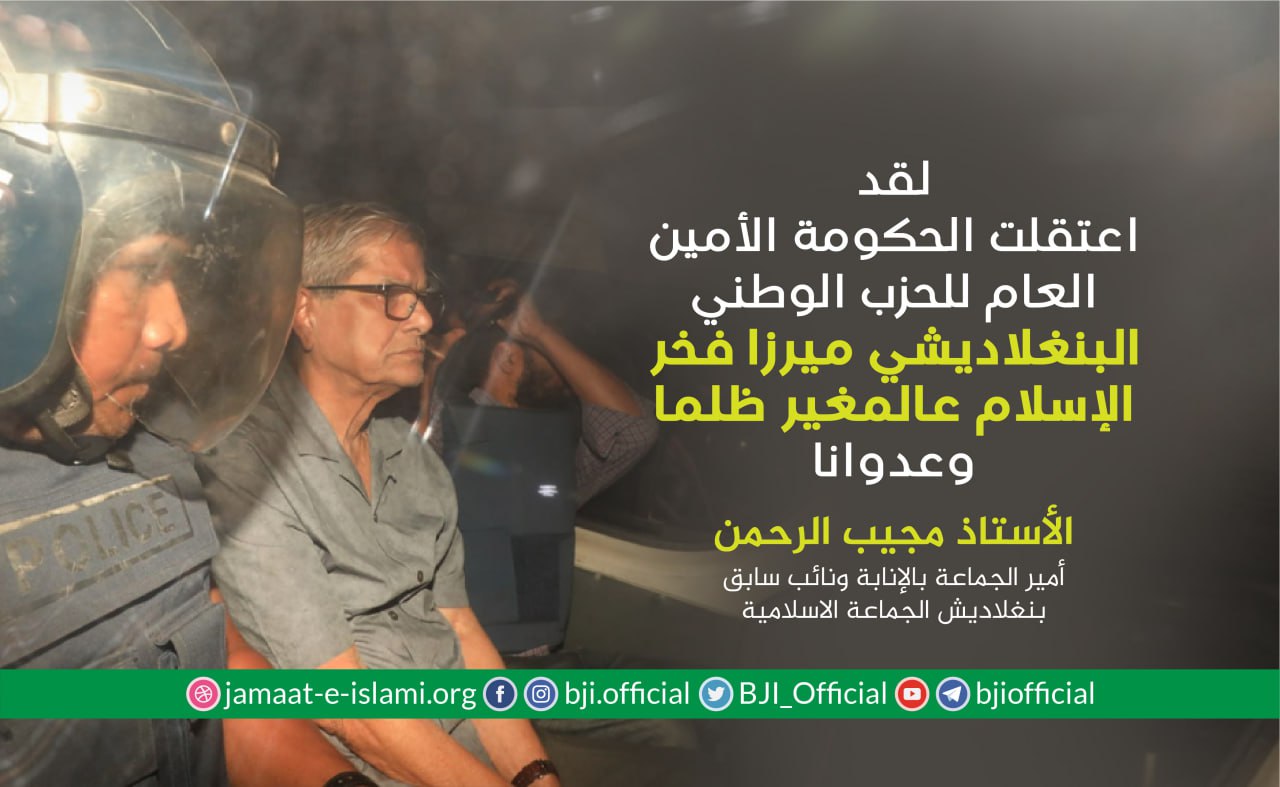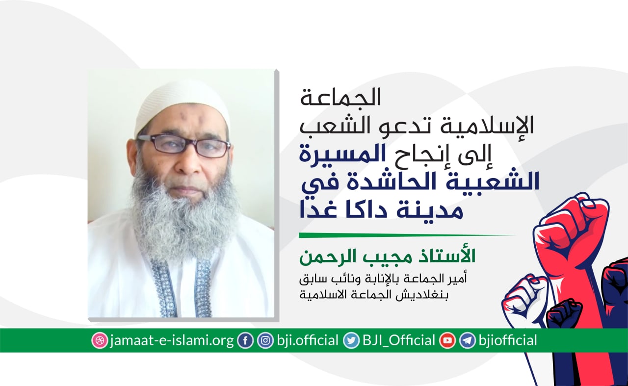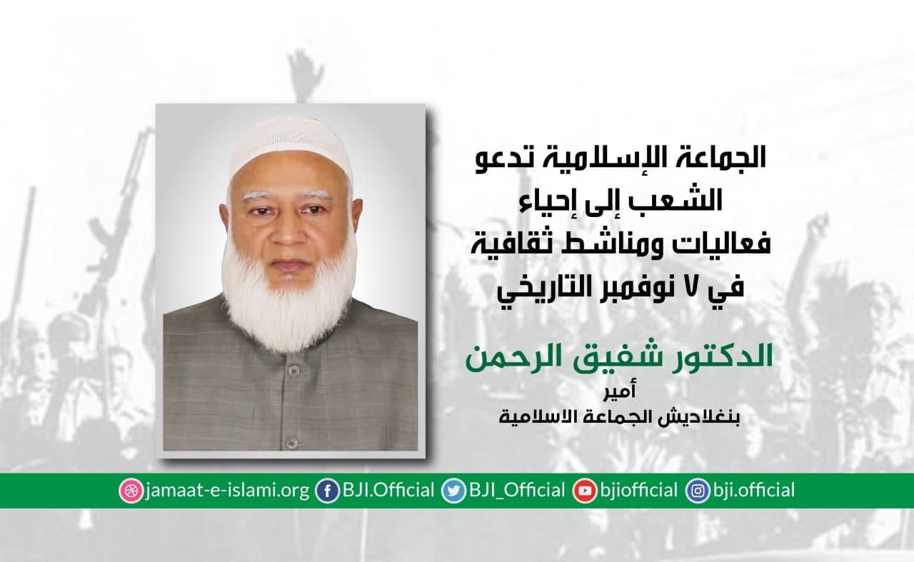 أصدرأميرالجماعةالإسلامية،الشيخالدكتورشفيقالرحمن اليوم السبت الموافق لـ 12 فبراير 2022 بيانا أدان فيه بشدة قيام الحكومة باعتقال الأمين العام للجماعة الإسلامية والنائب ...