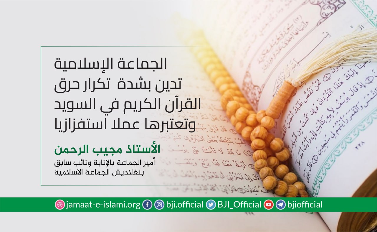 أصدر القائم بأعمال أمير الجماعة الإسلامية والنائب البرلماني السابق البروفيسور مجيب الرحمن بيانا أدان فيه بشدة تكرار حادثة حرق القرآن ...