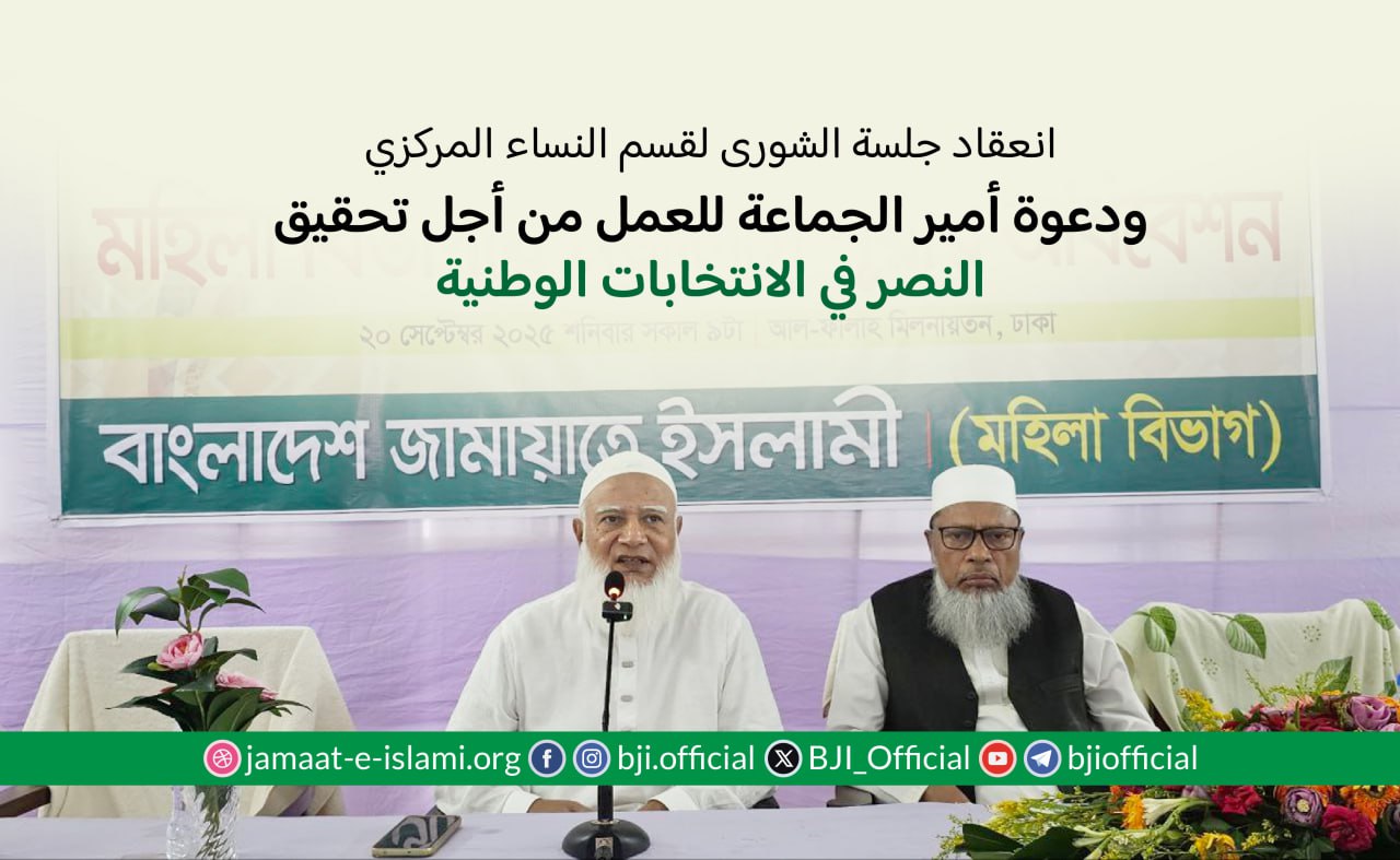 في صباح يوم الاثنين الموافق 20 أكتوبر 2025م، قامت الأستاذة نور النسا صديقة، سكرتيرة القسم النسائي المركزي للجماعة الإسلامية في ...