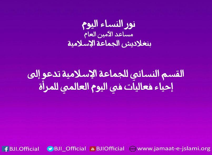 القسم النسائي للجماعة الإسلامية تدعو إلى إحياء فعاليات في اليوم العالمي للمرأة