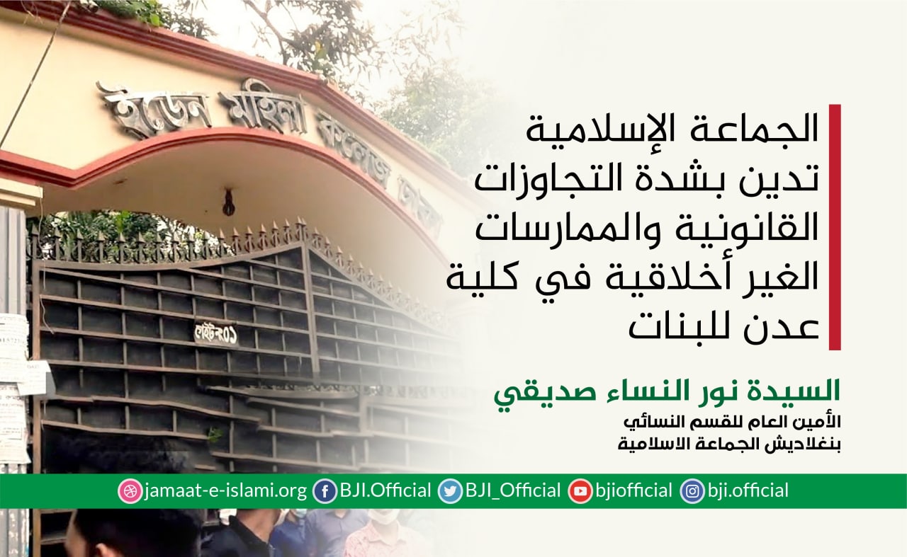الجماعة الإسلامية تدين بشدة التجاوزات القانونية والممارسات الغير أخلاقية في كلية عدن للبنات