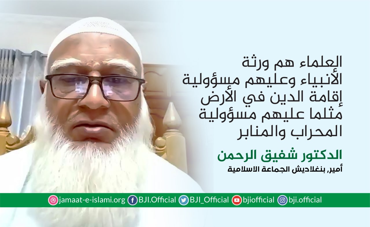 وقال أمير الجماعة الإسلامية في بنغلاديش الدكتور شفيق الرحمن، إن كلا من العلماء والطلبة تلقوا بشرى سارة. لأن النبي صلى ...