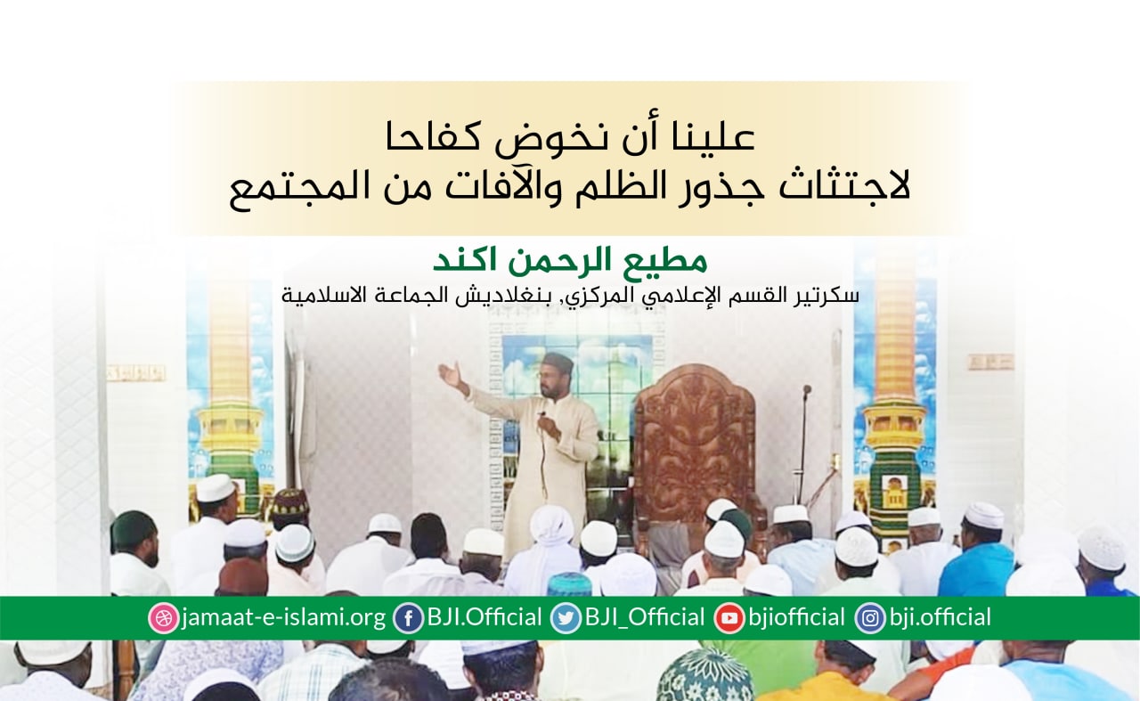 علينا أن نخوض كفاحا لاجتثاث جذور الظلم والآفات من المجتمع :المحامي مطيع الرحمن