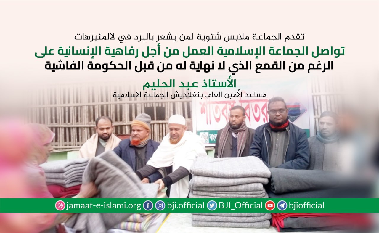 بمبادرة من الجماعة الإسلامية لمدينة"لالمنرهات"قام مساعد الأمين العام للجماعة الإسلامية الشيخ عبد الحليم في 31 ديسمبر 2020 بتوزيع الملاحف والبطانيات ...