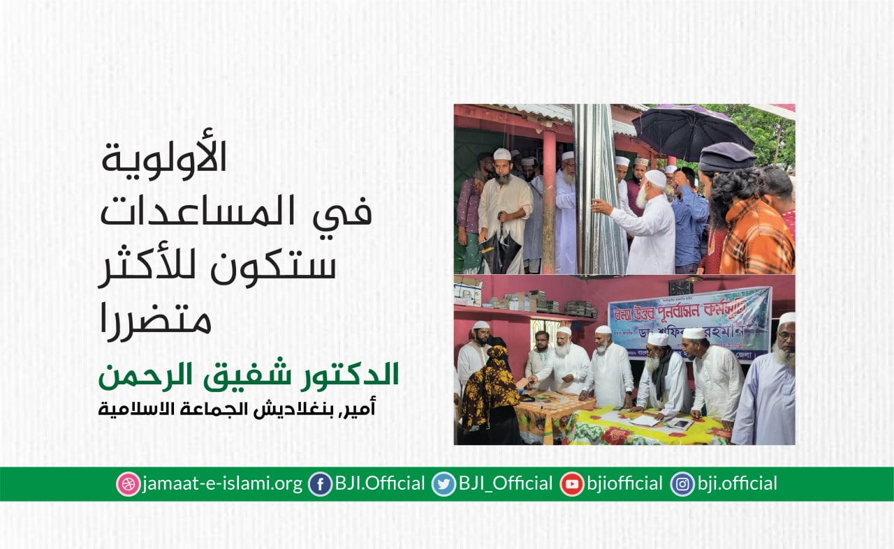 امتدادا لسلسلة البرنامج الإغاثي المركزي للجماعة الإسلامية،قام أمير الجماعة الإسلامية الشيخ الدكتور شفيق الرحمن بتوزيع المواد والطرود والسلال الغذائية على ...