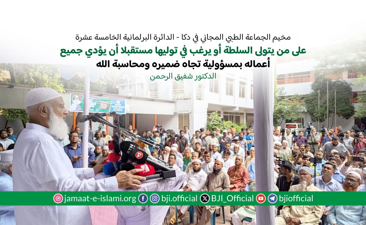 على من يتولى السلطة أو يرغب في توليها مستقبلا أن يؤدي جميع أعماله بمسؤولية تجاه ضميره ومحاسبة الله : الدكتور شفيق الرحمن